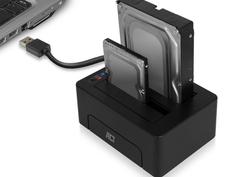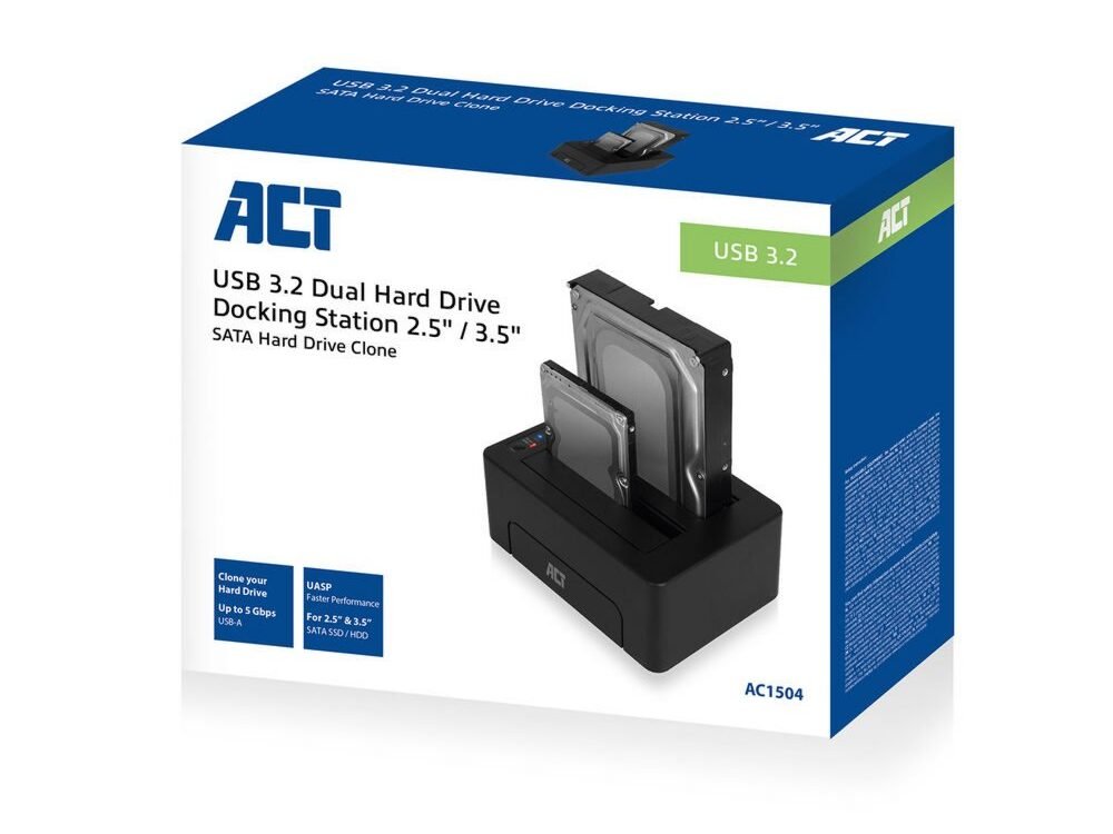 Met het AC1504 USB 3.2 Gen1 Docking Station sluit je eenvoudig 2,5 en 3,5 inch SATA harde schijven aan zonder dat je computer daarvoor opengeschroefd hoeft te worden.