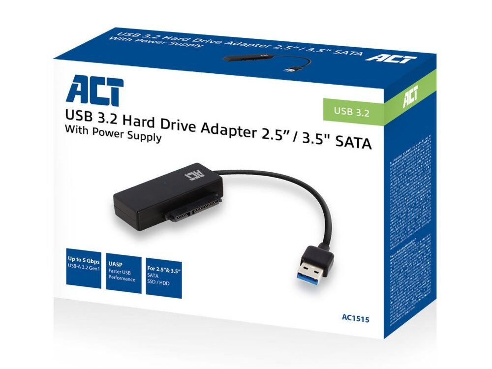 De adapter ondersteunt zowel 2,5 inch als 3,5 inch SATA-schijven, zodat je kunt werken met diverse formaten en capaciteiten. Hierdoor kun je je oude harde schijven hergebruiken of nieuwe SSD’s aansluiten voor snellere prestaties.