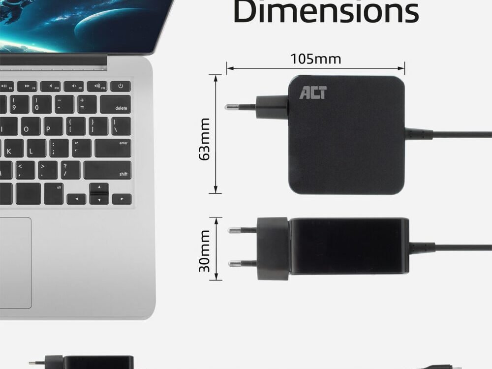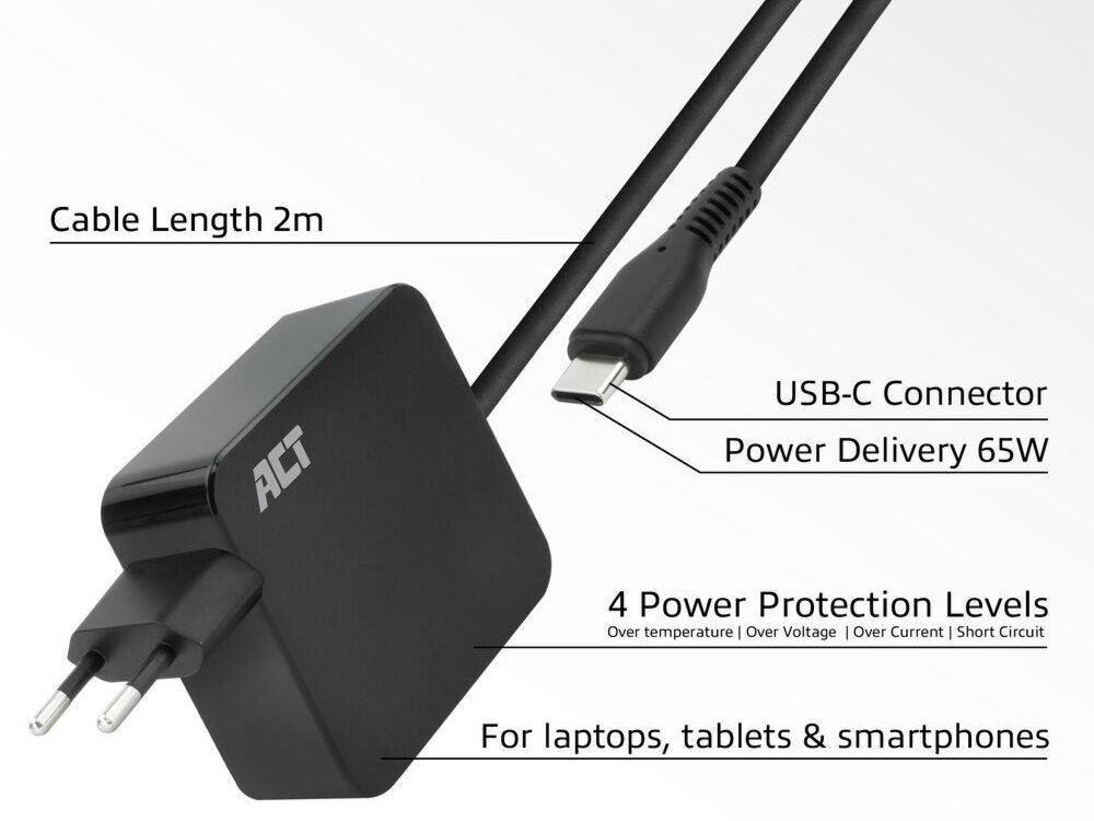 ACT AC2010 | Universele USB-C Notebook Lader | 65 Watt PDP | 2 Meter