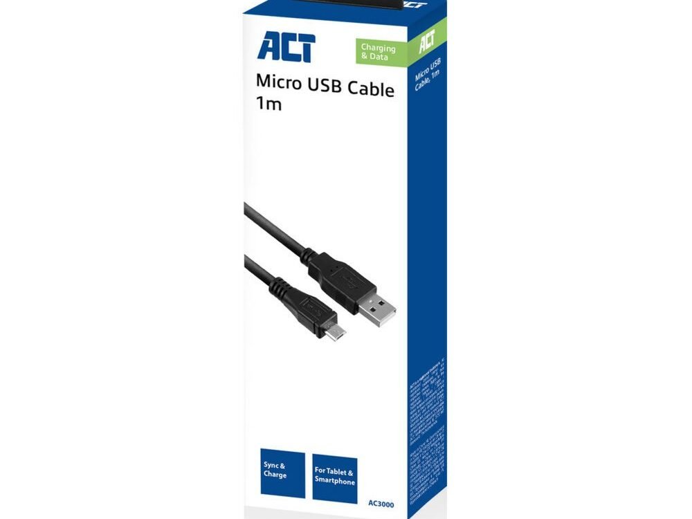 ACT AC3000 | USB 2.0 | USB-A naar Micro-USB-B | 1m | Zwart