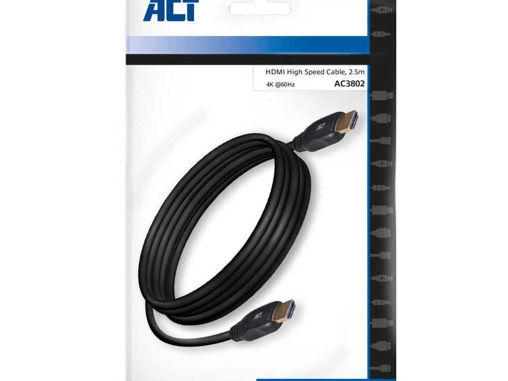 ACT AC3802 HDMI Kabel | 2,5 m | HDMI Type A naar Type A | Zwart