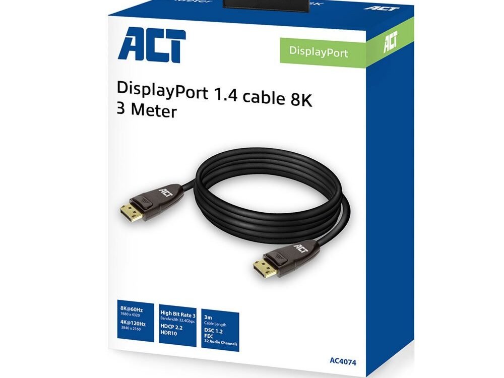 ACT AC4074 | DisplayPort 1.4 Kabel | 3 meter | 8K @60Hz | 4K @120Hz