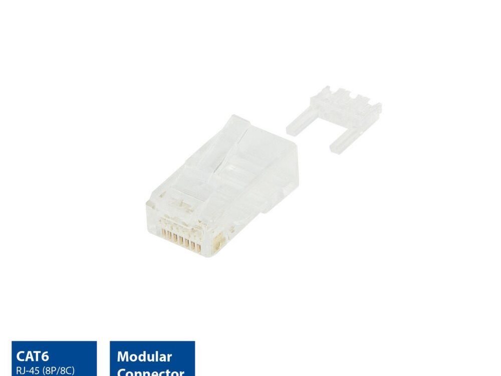 Gebruik deze Modulaire RJ-45 Connector om zelf je Cat6 UTP netwerkkabel te maken. Deze connector is geschikt voor ronde soepele of massieve kabels.