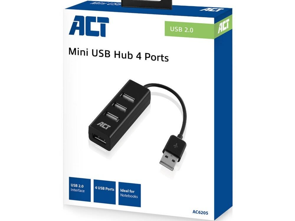 De ACT AC6205 Mini 4-Poorts USB Hub is de ideale oplossing om je pc of laptop uit te breiden met vier USB-poorten. Het compacte design zorgt ervoor dat je de USB hub eenvoudig meeneemt en je laptop uitbreidt met extra USB-aansluitingen.
