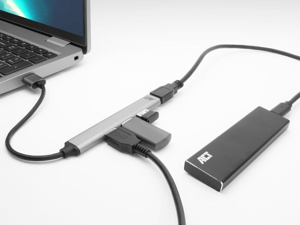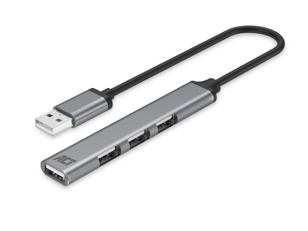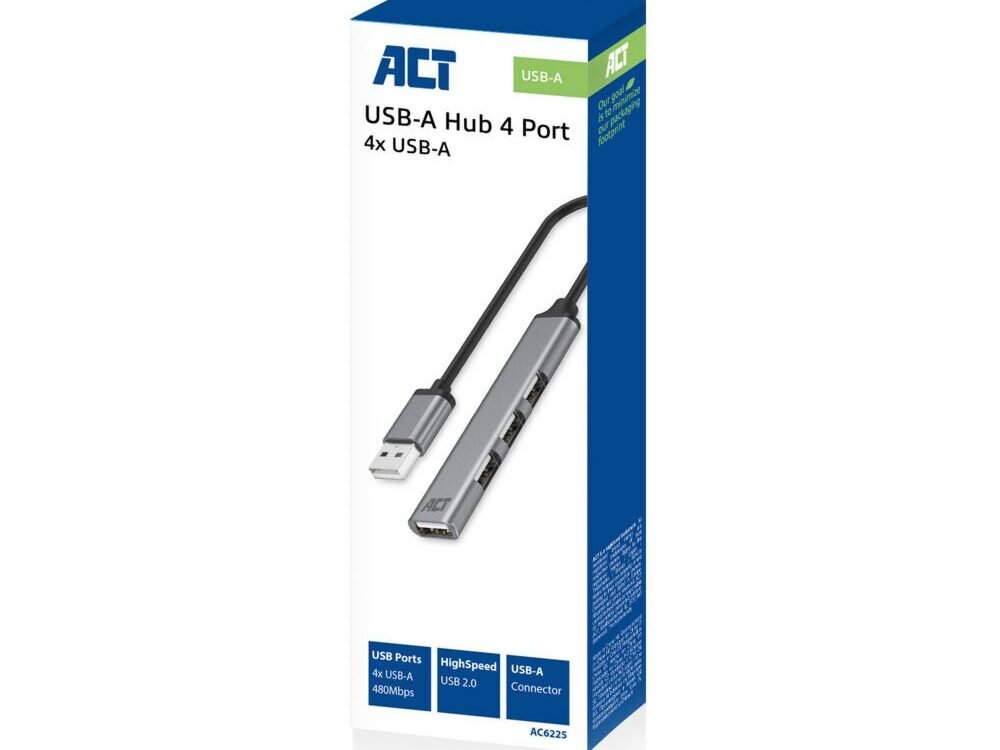 De ACT AC6225 USB-A hub voegt 4 USB-A poorten toe aan je laptop of computer. De compacte en lichtgewicht aluminium hub is compatibel met de USB 2.0 480Mbps standaard.