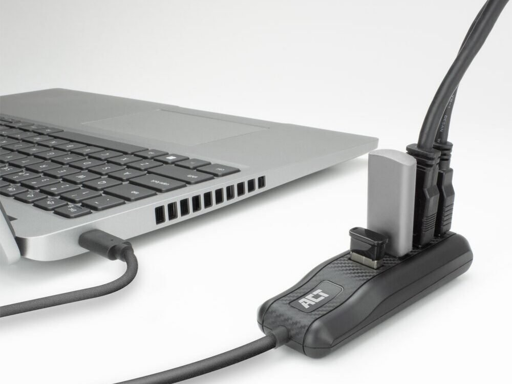 De ACT AC6420 USB hub heeft een lichtgewicht ontwerp dat gemakkelijk in je laptoptas past. De hub voegt vier extra USB poorten toe aan je laptop of computer met USB-C voor het aansluiten van USB-A randapparatuur.