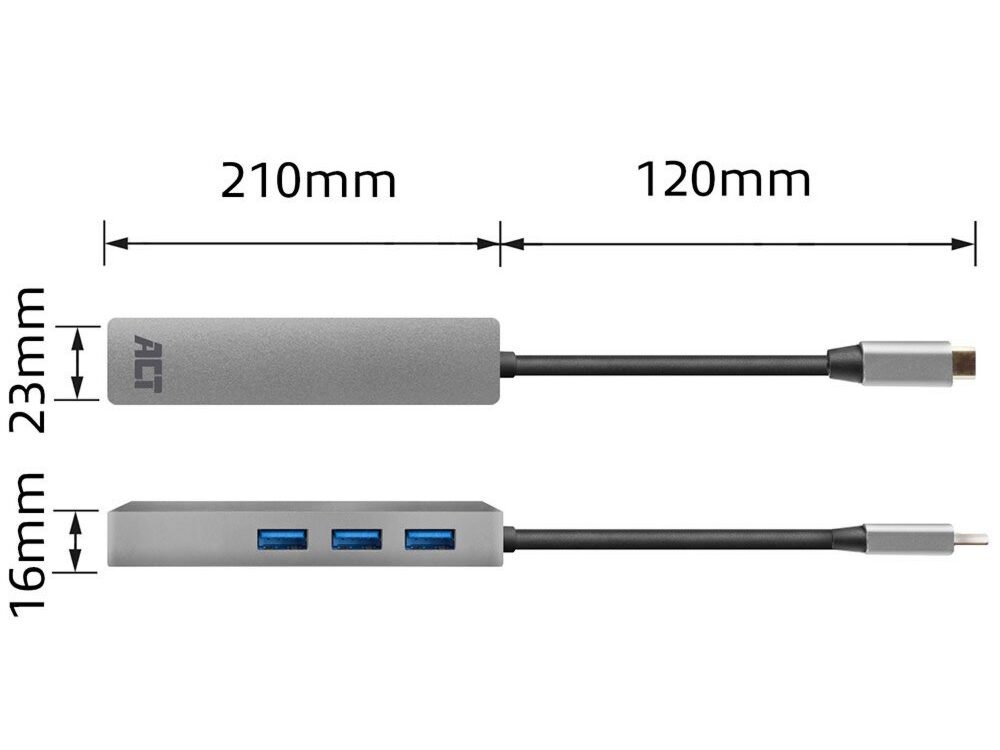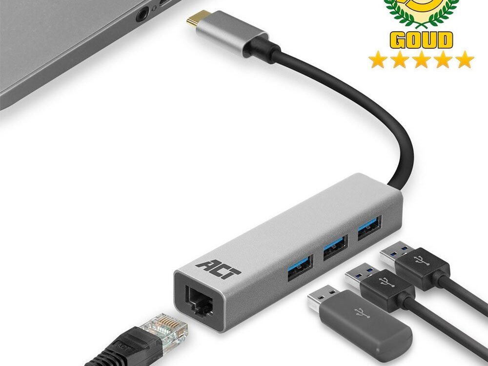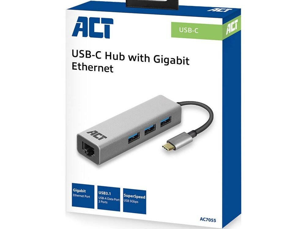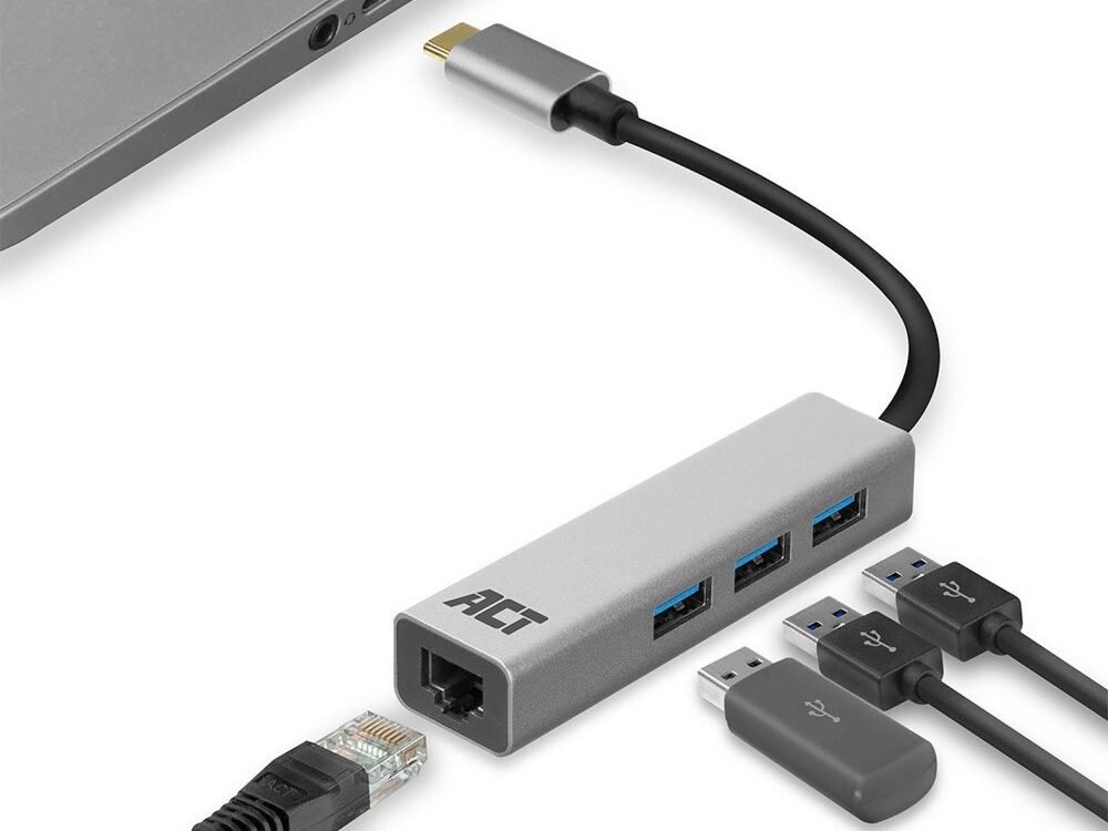 ACT AC7055 | 3-Poorts USB-C 3.2 (USB 3.0) Hub | Gigabit Ethernet Poort
