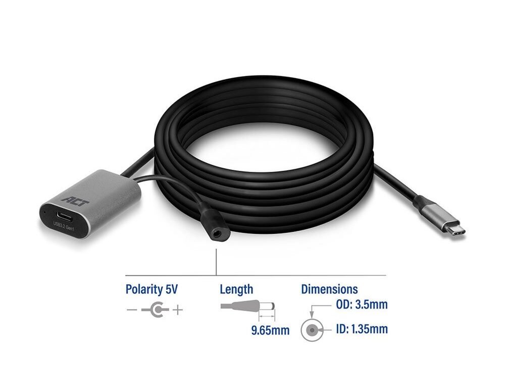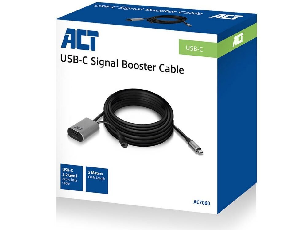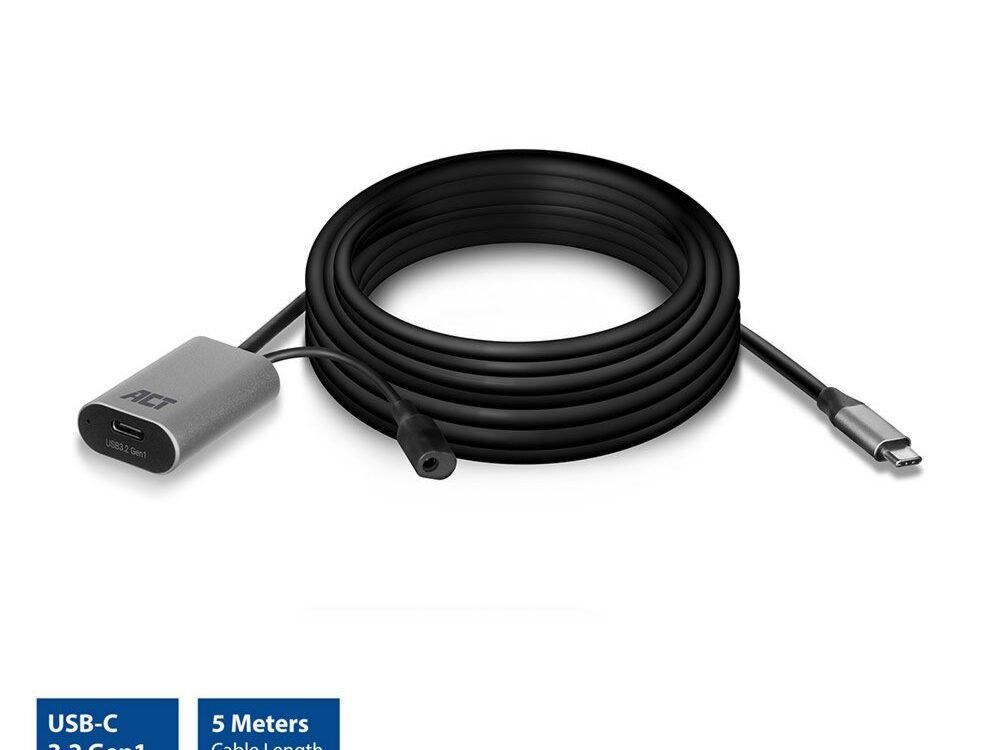 ACT AC7060 | USB-C Verlengkabel met Signaalversterker | 5m | Zwart