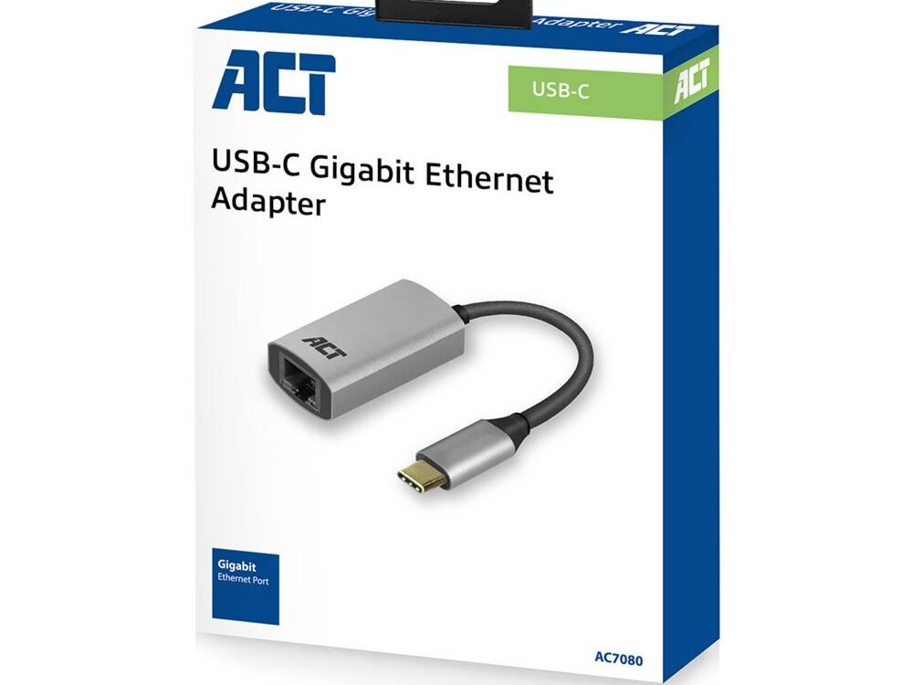 De ACT AC7080 USB-C 3.2 Gen1 naar RJ45 Gigabit Ethernetadapter is de oplossing wanneer de netwerkpoort van het apparaat (bijv. een laptop) kapot is of wanneer deze geen netwerkpoort heeft. De laptop wordt zo geüpgraded met een fysieke gigabit netwerkverbinding. De netwerkadapter is direct klaar voor gebruik en kan worden gebruikt op iedere USB-C poort. De AC7080 wordt gevoed via USB.