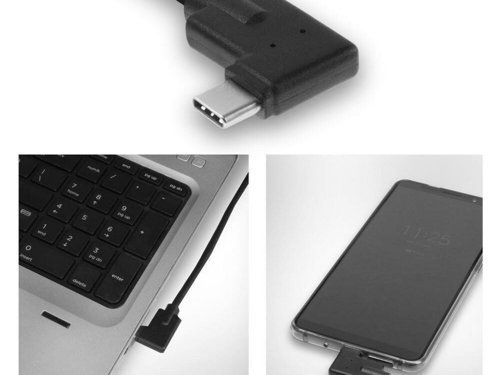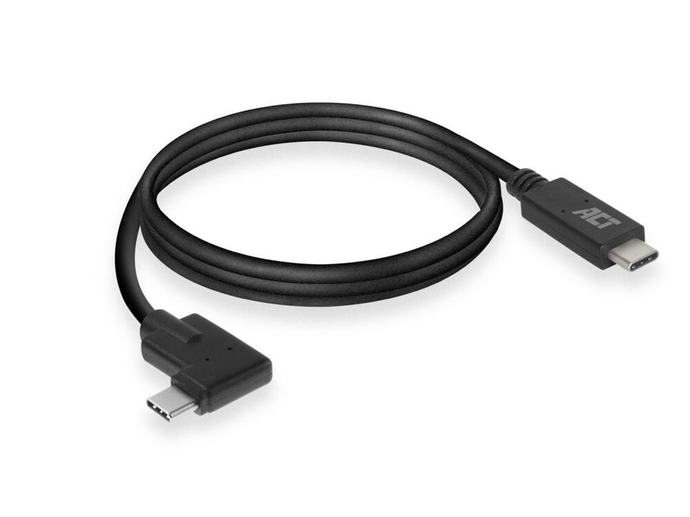 Gebruik de USB-C 3.2 Gen1 aansluitkabel voor het aansluiten van USB-C-apparaten. De USB-kabel heeft een maximale data overdrachtssnelheid tot 5Gbps. De kabel heeft één rechte connector, één haakse connector en ondersteunt 60W Power Delivery en DP Alternate mode.