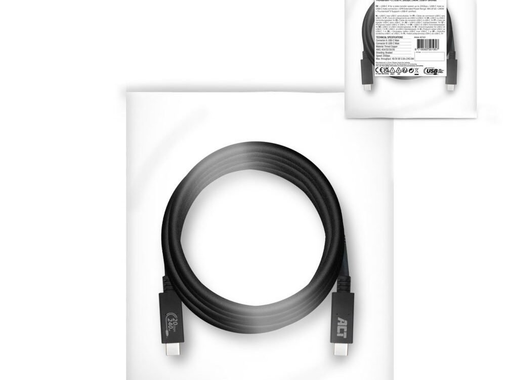 De AC7431 is een officieel gecertificeerde USB-C-kabel met ondersteuning van het USB4®-protocol. De USB4®-kabel haalt een maximale data overdrachtssnelheid tot 20Gbps en 240W door de Extended Power Range. De AC7431 ondersteunt een maximale resolutie van één 5K-monitor of twee 4K-monitoren in Daisy chain opstelling. De kabel is overeenkomstig met Thunderbolt™3, USB 3.2 en USB 2.0 specificaties.