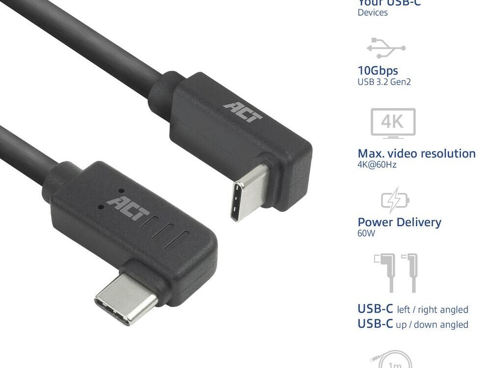 Het haakse ontwerp van de connector maakt het mogelijk om apparaten aan te sluiten in kleine ruimtes en op moeilijk bereikbare plaatsen. Voor apparaten die vaak worden verplaatst terwijl ze zijn aangesloten, wordt het risico op schade aan de poort of de kabel vermindert. De haakse connector zorgt ervoor dat er minder spanning op de kabel komt, waardoor deze langer meegaat. Daarnaast dragen haakse kabels ook bij aan een nettere en overzichtelijkere opstelling.