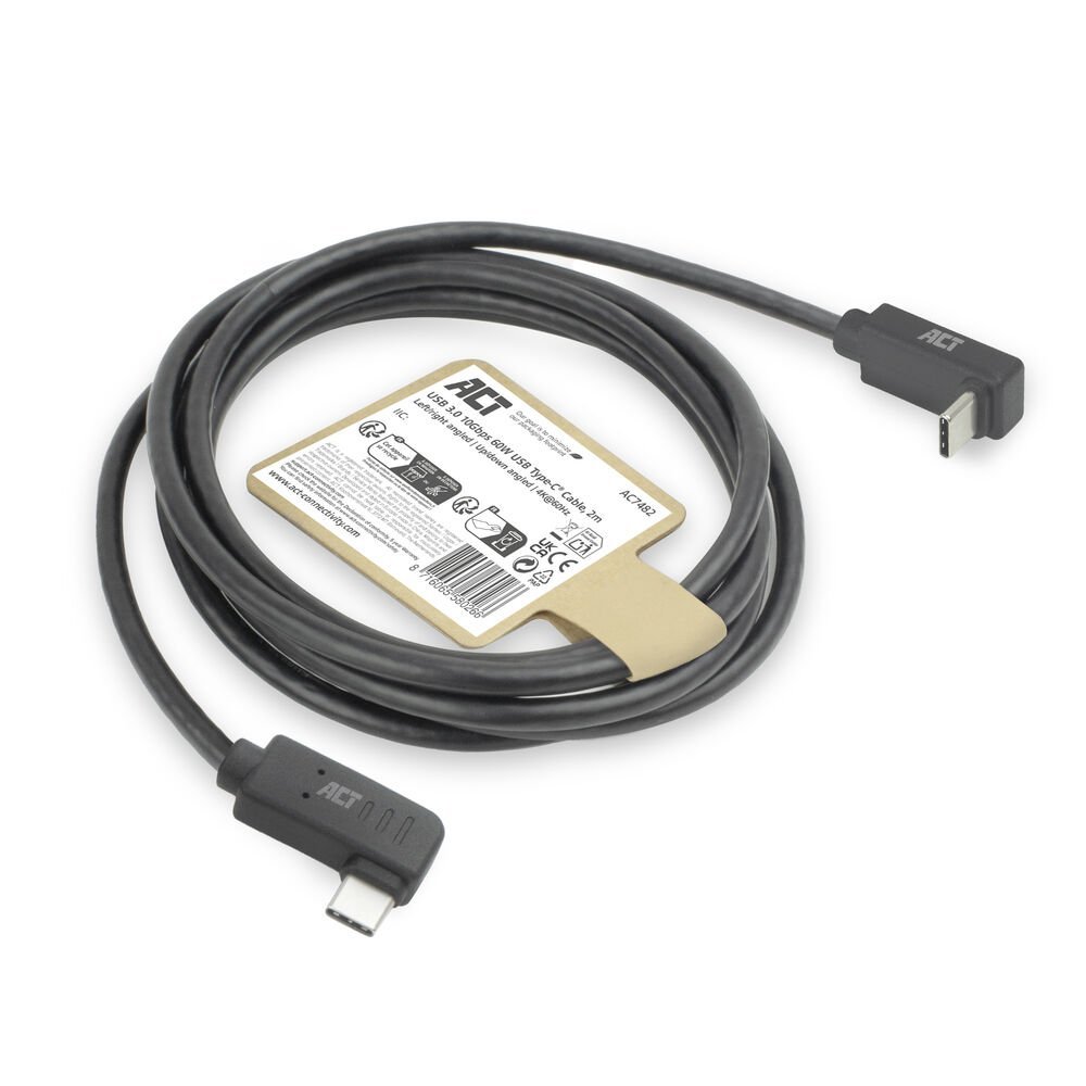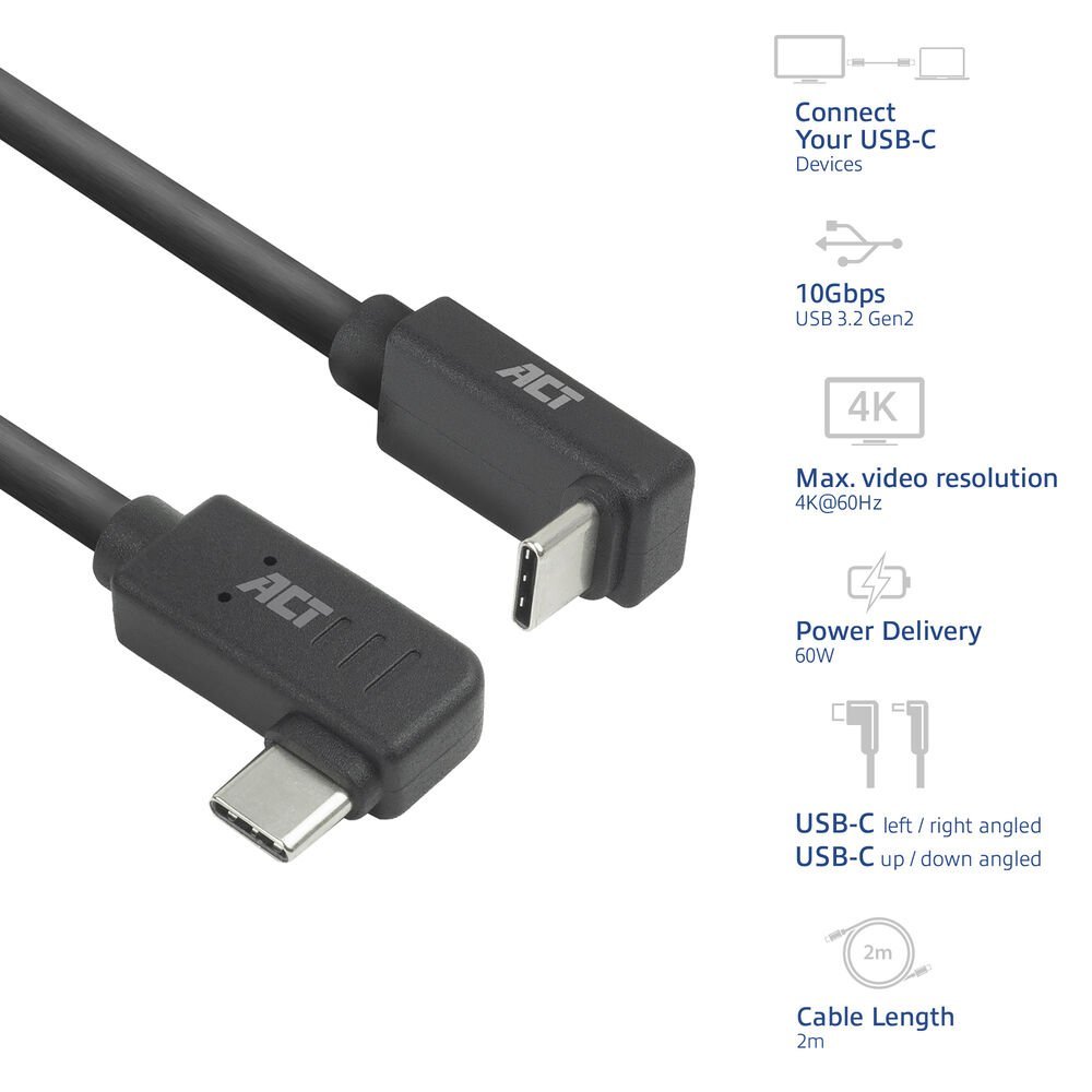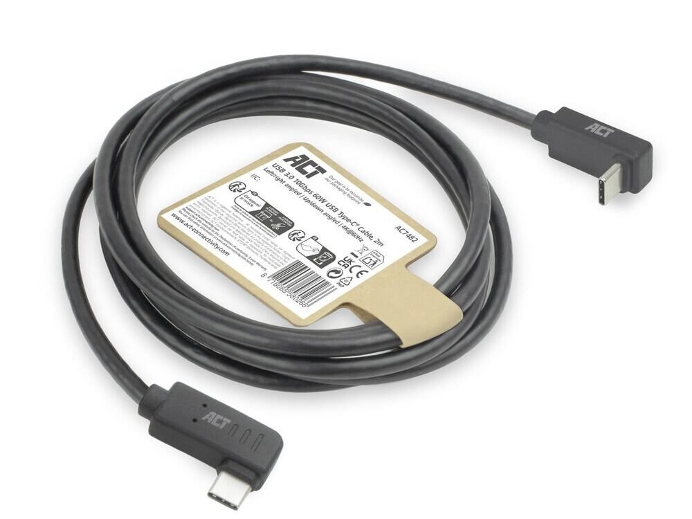 De USB Type-C®-kabel heeft een 90° haakse (naar links en rechts) connector aan een zijde en een 90° haakse connector (naar boven en beneden) aan de andere zijde. In combinatie met de symmetrische USB-C-connector, biedt een haakse USB Type-C®-kabel verschillende voordelen.