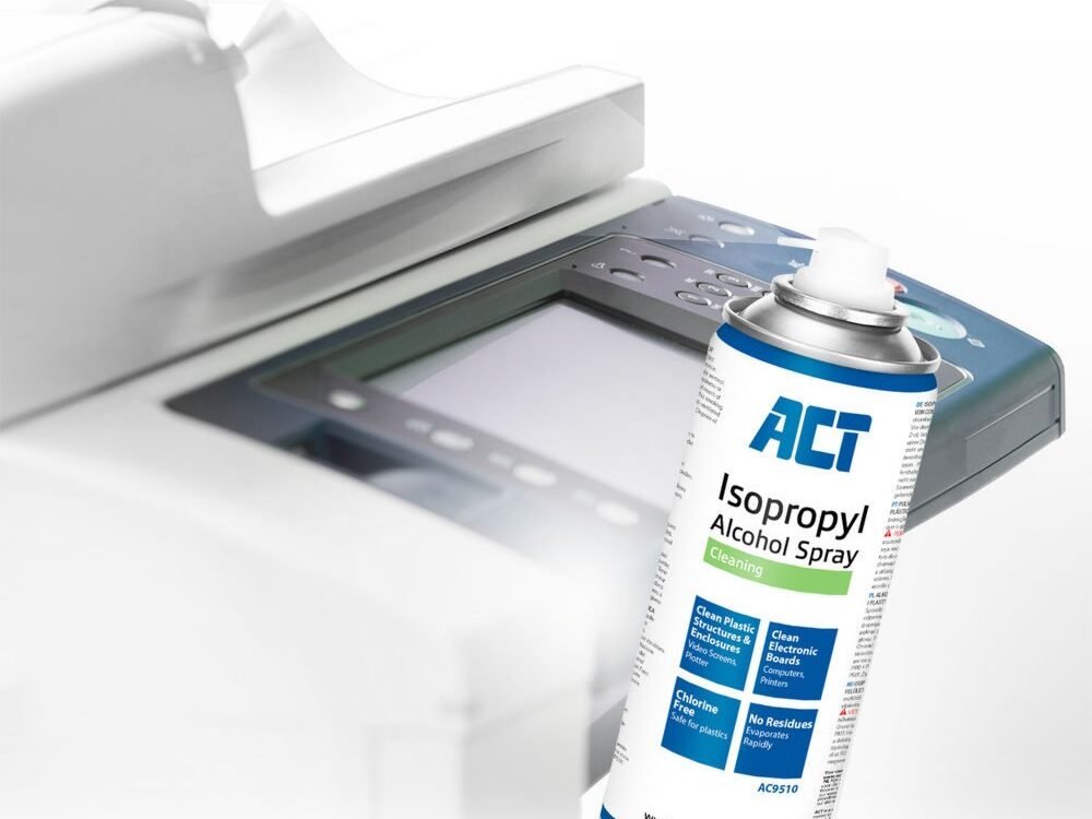 De ACT AC9510 Isopropyl Alcohol spray is ideaal voor het schoonmaken van printplaten en plastic onderdelen van computers en printers. De spray is chloorvrij, laat geen resten achter en verdampt snel. Daarnaast is de Isopropyl Alcohol spray 100% ozonvriendelijk.