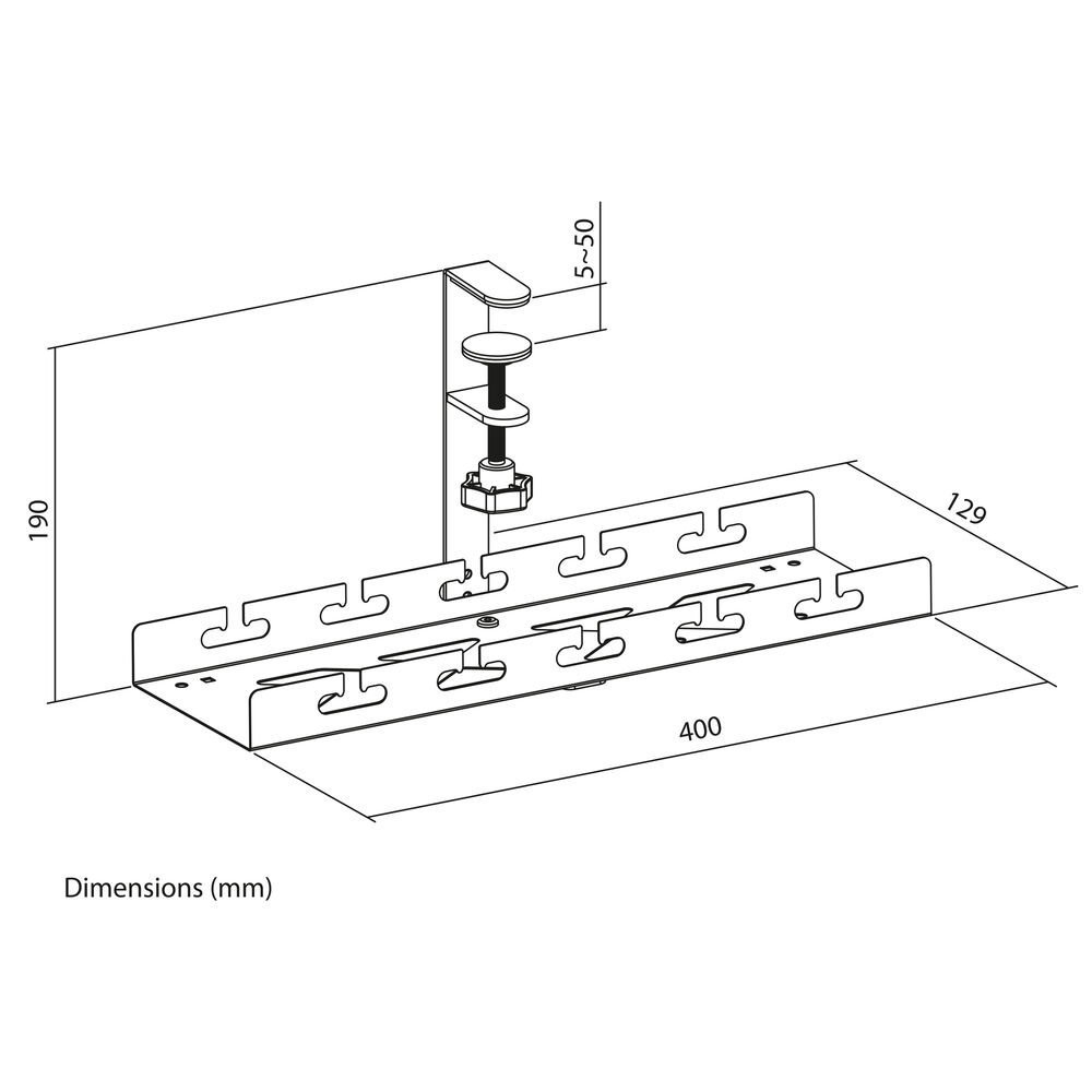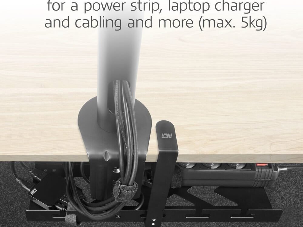De metalen AC8378 kabelgoot zorgt voor het netjes en opgeruimd houden van een bureau en voor het ordenen van kabels. De kabelgoot heeft een breedte van 40cm en biedt genoeg ruimte voor het opbergen van een stekkerdoos, laptoplader, kabels en meer. De kabelgoot heeft een open structuur voor betere ventilatie en kabelgeleidingen en is te monteren zonder te schroeven of het boren van gaten. Bevestig de goot onder een bureau (maximale tafeldikte 50mm) met het bijgeleverde klemsysteem. De AC8378 kan samen worden gebruikt met een monitorarm met klemmontage.