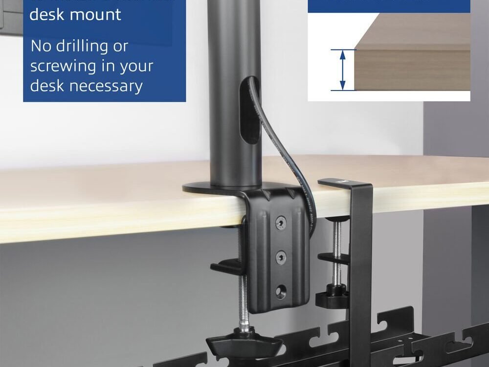 We kunnen het ons voorstellen dat het je tegen staat om in een bureau te gaan boren. Daarom leveren wij een klemsysteem mee voor het monteren van de kabelmanagementgoot. Met de meegeleverde klem installeer je eenvoudig de goot onder een bureau met een maximale bladdikte van 50mm.