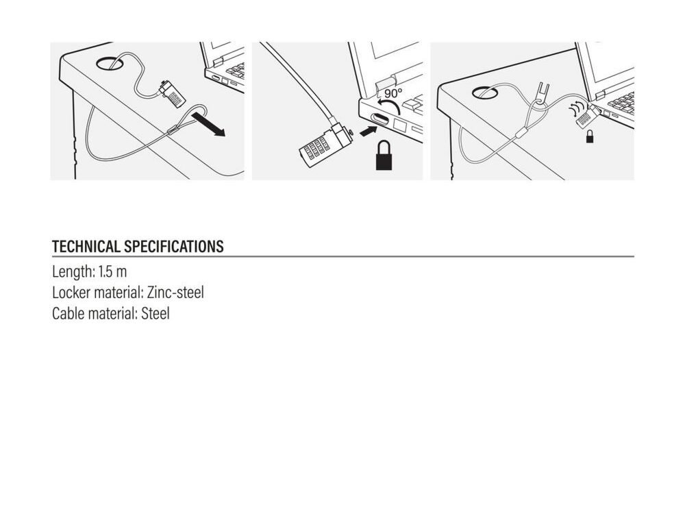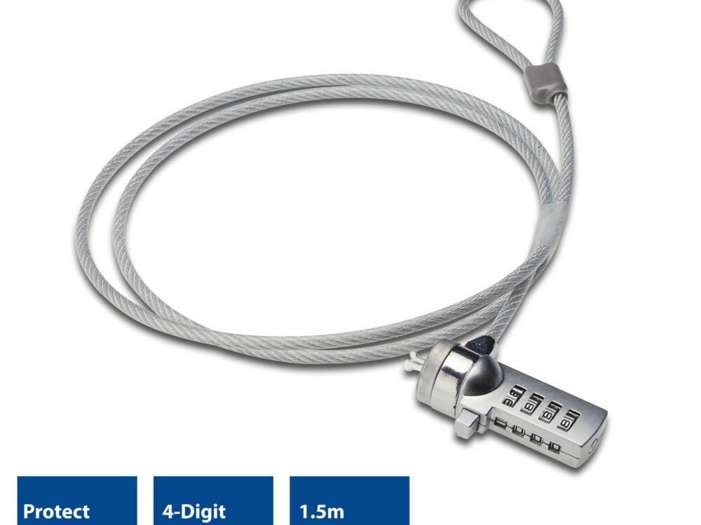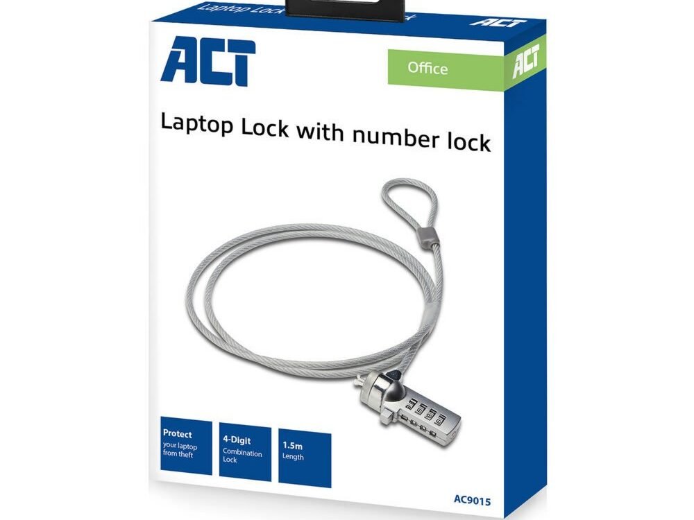 Het AC9015 Laptopslot beschermt je laptop en desktop tegen diefstal. Je gebruikt het slot zoals een fietsenslot. Bind de kabel om een object welke moeilijk te verplaatsen is, zoals een muur, radiator of bureau en kies de cijfcombinatie om het slot te activeren.