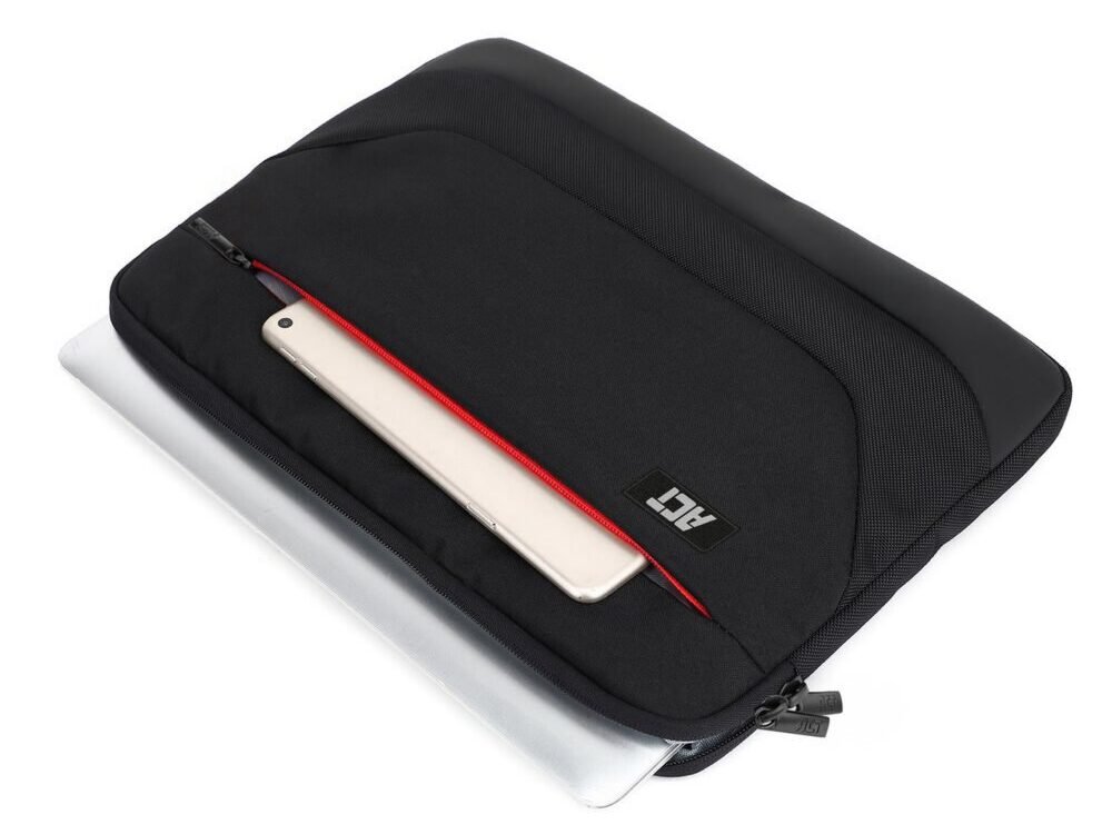 Bescherm je laptop met de ACT AC8575 Suburb laptop sleeve voor laptops tot 13,3 inch. Deze lichtgewicht laptophoes biedt genoeg ruimte voor je laptop en daarnaast nog voor je stroomadapter, muis en andere spullen. De sleeve is gemaakt van waterafstotend rPET materiaal: gerecyclede plastic flessen.