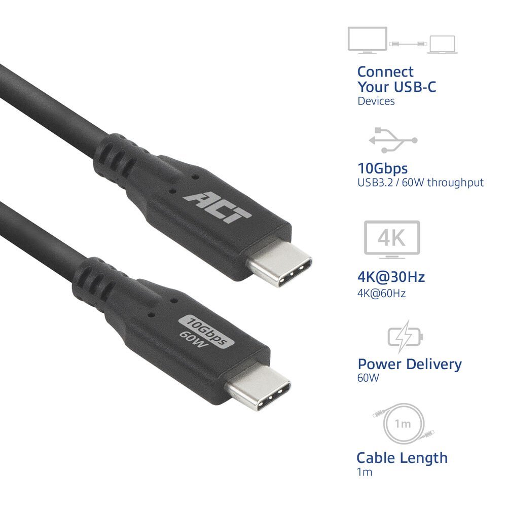 De AC7441 USB-C-kabel kan overweg met zowel data, power en video. De kabel ondersteunt de USB 3.2 technologie en voor een maximale overdrachtssnelheid tot 10Gbps.