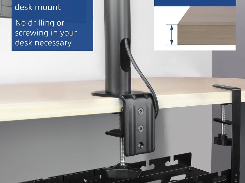 We kunnen het ons voorstellen dat het je tegen staat om in een bureau te gaan boren. Daarom leveren wij een klemsysteem mee voor het monteren van de kabelmanagementgoot. Met de meegeleverde klem installeer je eenvoudig de goot onder een bureau met een maximale bladdikte van 50mm.