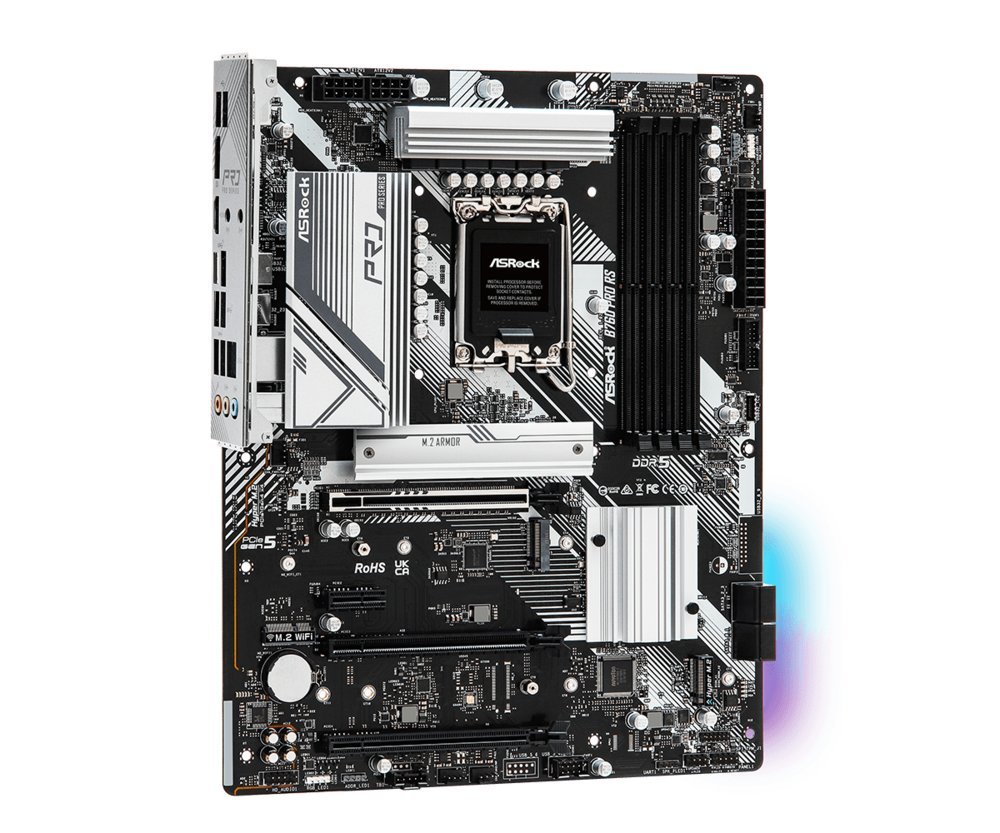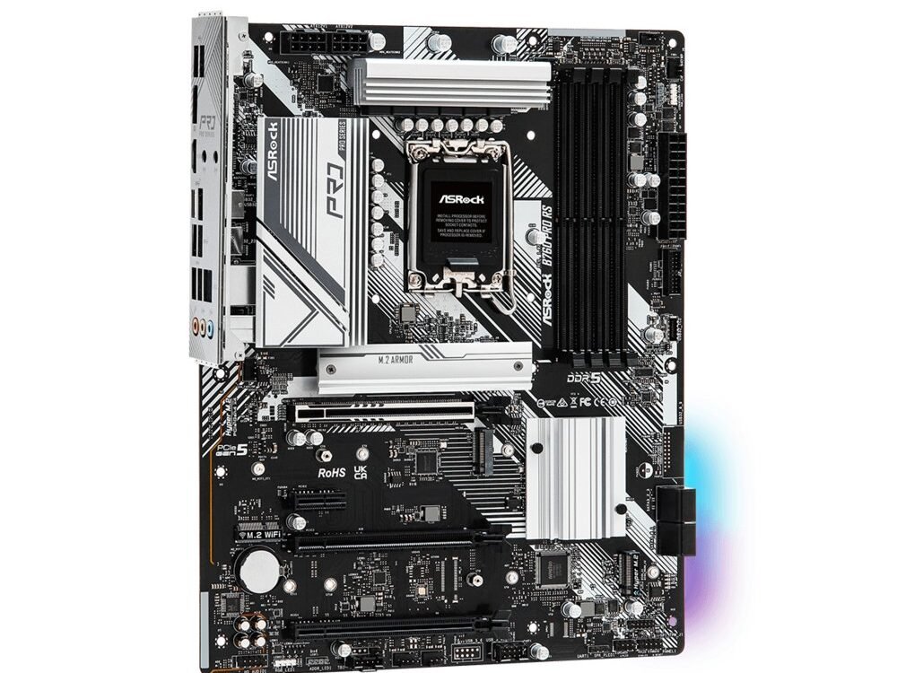 De Asrock B760 PRO RS is een veelzijdig moederbord voor Intel-processors, met een LGA 1700-socket die compatibel is met Intel® Core™ i3, i5, i7 en i9-processors. Het biedt ondersteuning voor DDR5-SDRAM-geheugen met een maximale capaciteit van 128 GB, verdeeld over DIMM-geheugenslots.