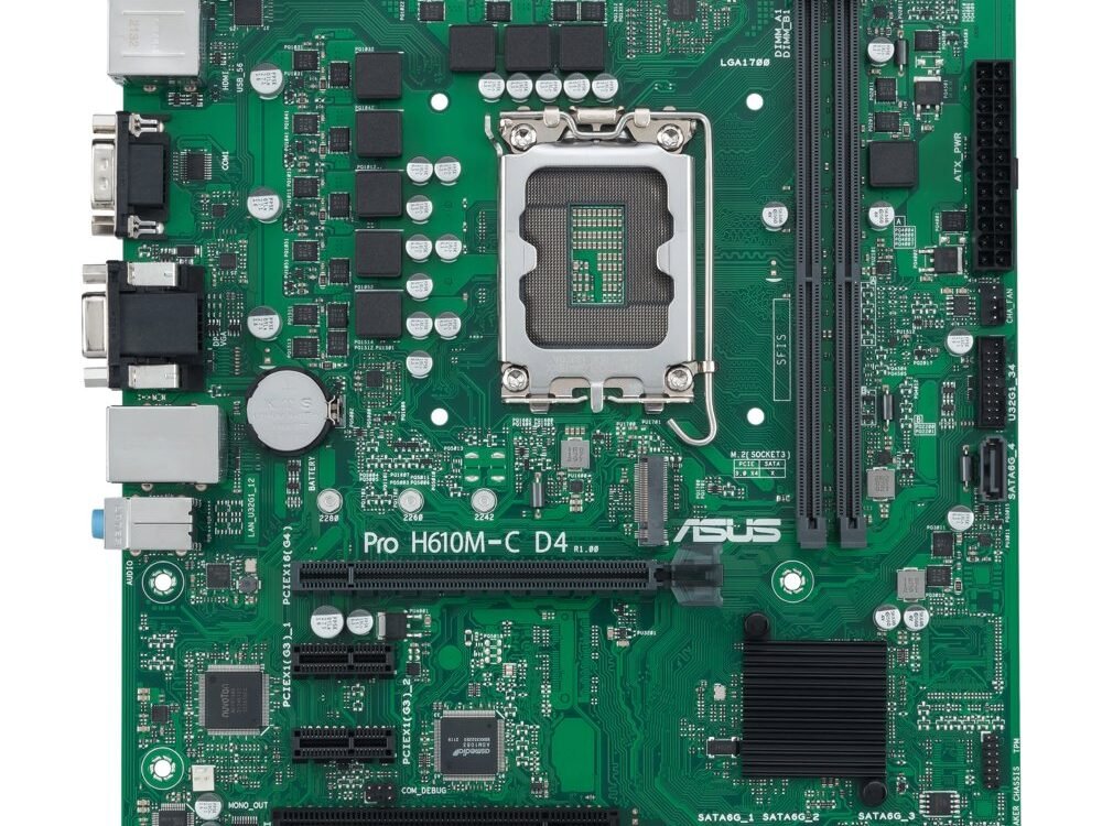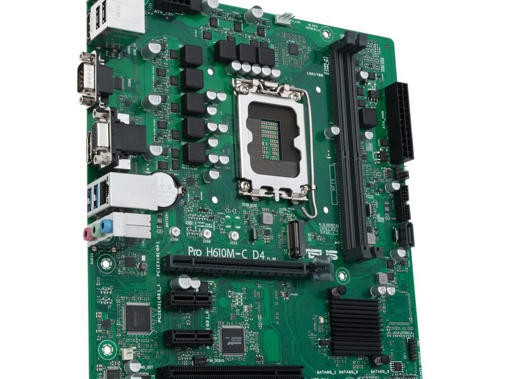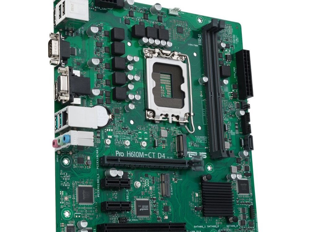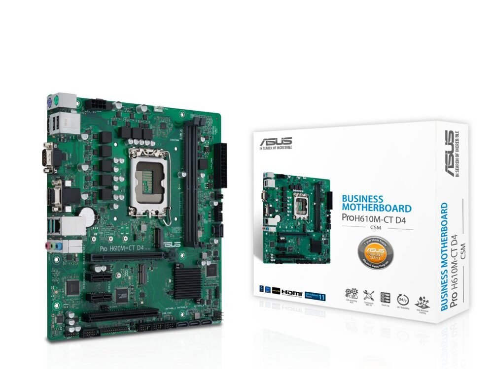 De ASUS PRO H610M-C D4-CSM is een krachtig micro ATX-moederbord ontworpen voor Intel-systemen. Met een LGA 1700-processorsocket biedt dit moederbord compatibiliteit met een breed scala aan Intel-processors, waaronder Intel® Celeron®, Core™ i3, i5, i7, i9, en Pentium®.