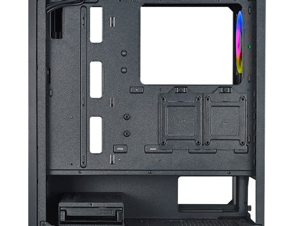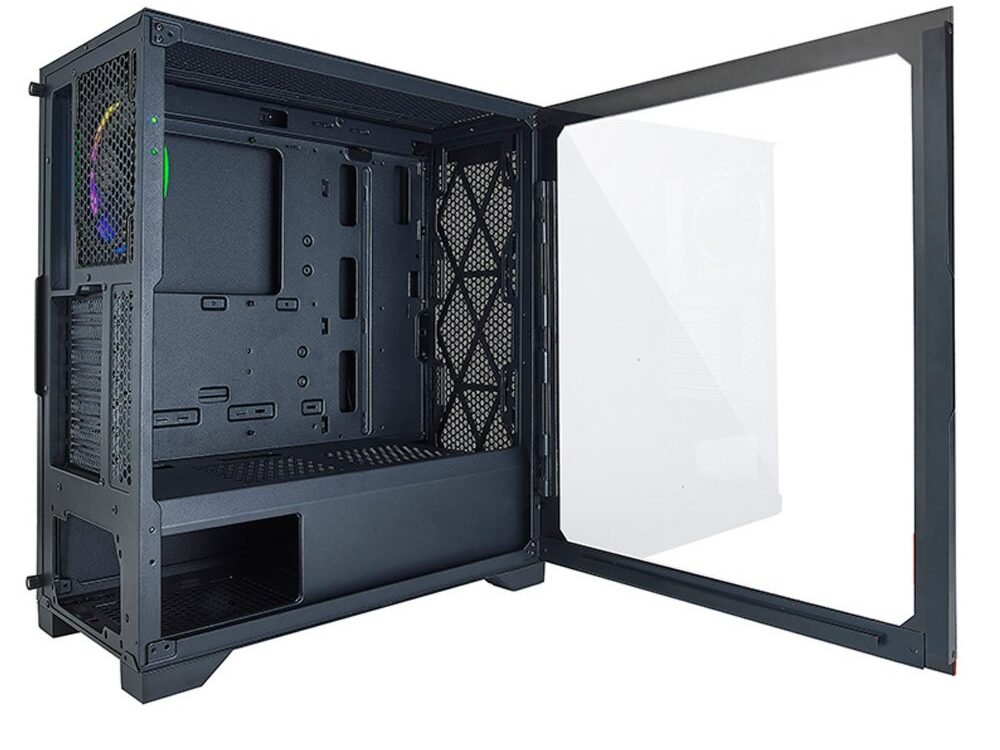 Er is voldoende ruimte in de behuizing, met ondersteuning voor een grafische kaart tot 360 mm, tot vier 2,5″ schijven, 9 ventilatorpoorten en radiatoren aan de bovenkant en voorkant.
