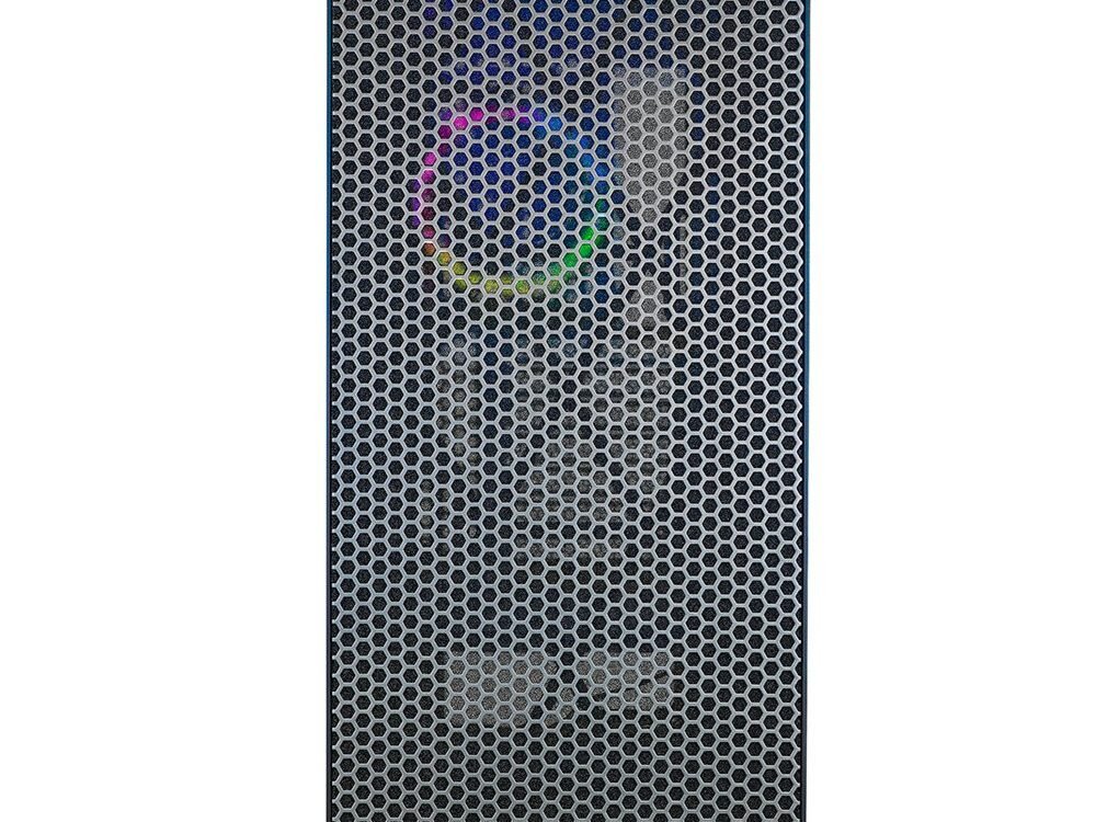 Een laag fijn, ademend gaas bedekt het gehele voorpaneel, wat zorgt voor stofbescherming en het dempen van overmatig licht van het interieur van de behuizing.