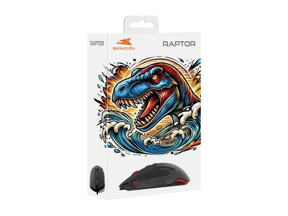 Ontdek de kracht en precisie van de Baracuda RAPTOR RGB bedrade gaming muis in stijlvol zwart, perfect voor elke serieuze gamer. Deze geavanceerde USB-A gaming muis combineert een indrukwekkende prestatie met een dynamische esthetiek, ontworpen om jou een competitief voordeel te geven in elke game.