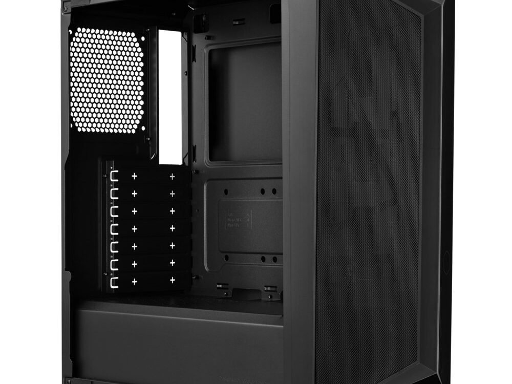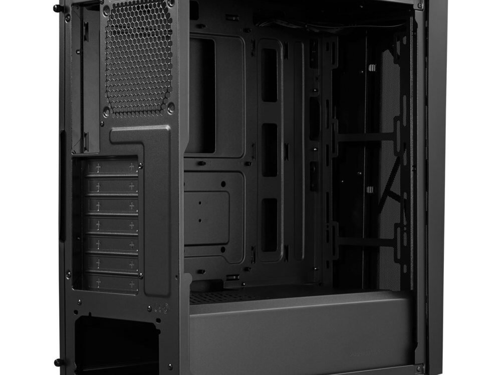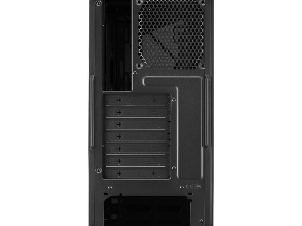 Deze midi tower heeft een strak en modern ontwerp met een robuuste zwarte afwerking en een venster van gehard glas aan de zijkant, waardoor je een prachtig zicht hebt op de interne componenten van je computer. De behuizing is gemaakt van duurzaam staal en is zeer stevig, waardoor je erop kunt vertrouwen dat je computer veilig is.