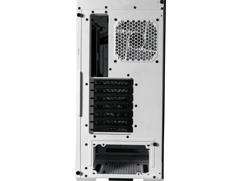 Het zijpaneel van gehard glas is beveiligd met pinnen voor eenvoudige verwijdering, waardoor snelle toegang tot de interne onderdelen mogelijk is zonder het gebruik van gereedschap. Een optionele schroef kan worden geïnstalleerd om het zijpaneel van gehard glas verder te beveiligen.
