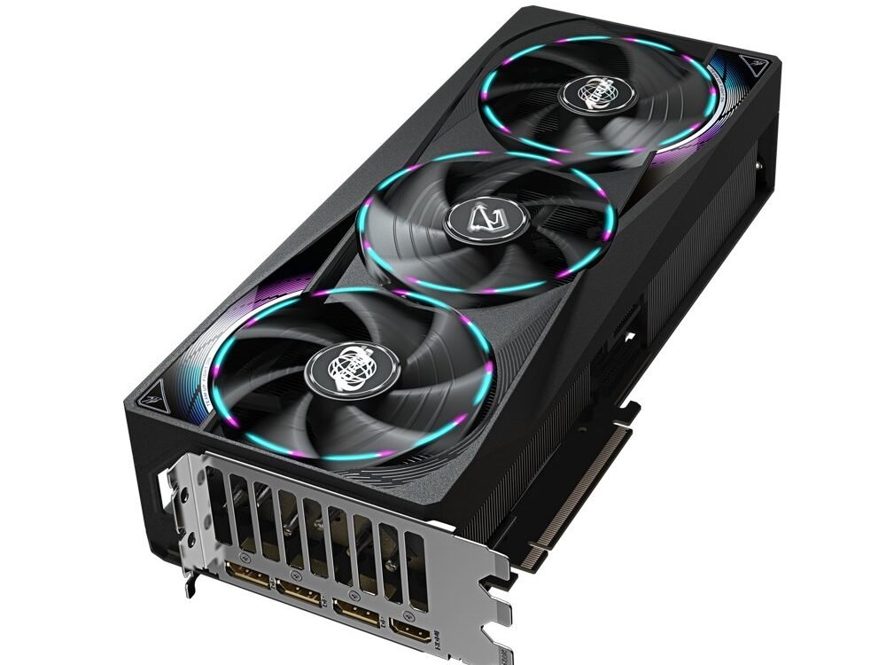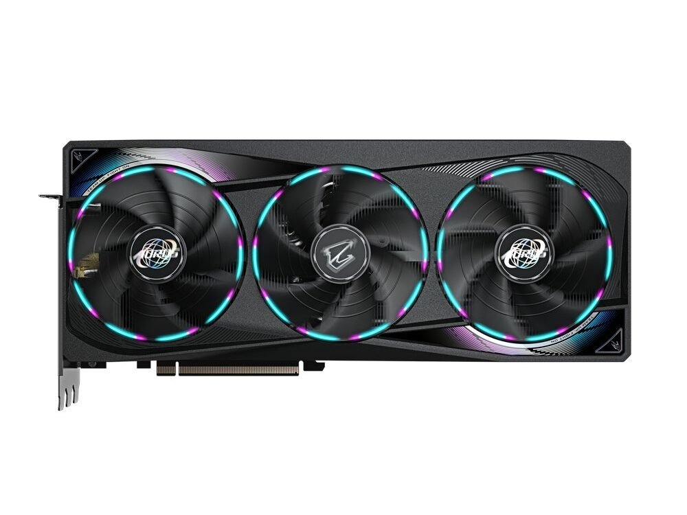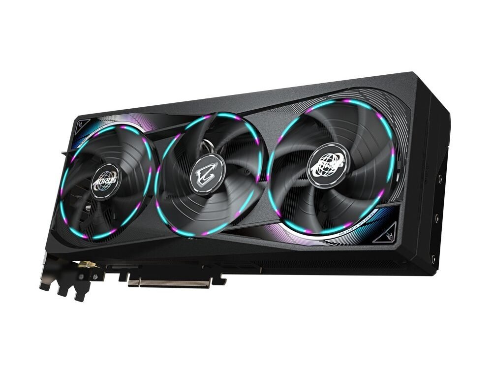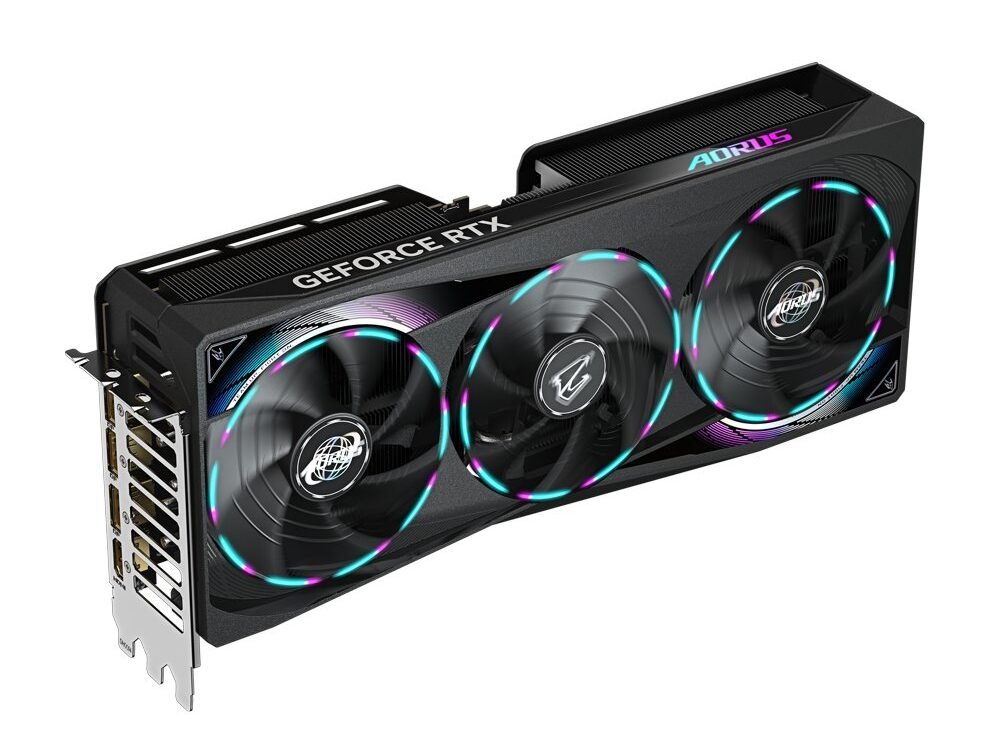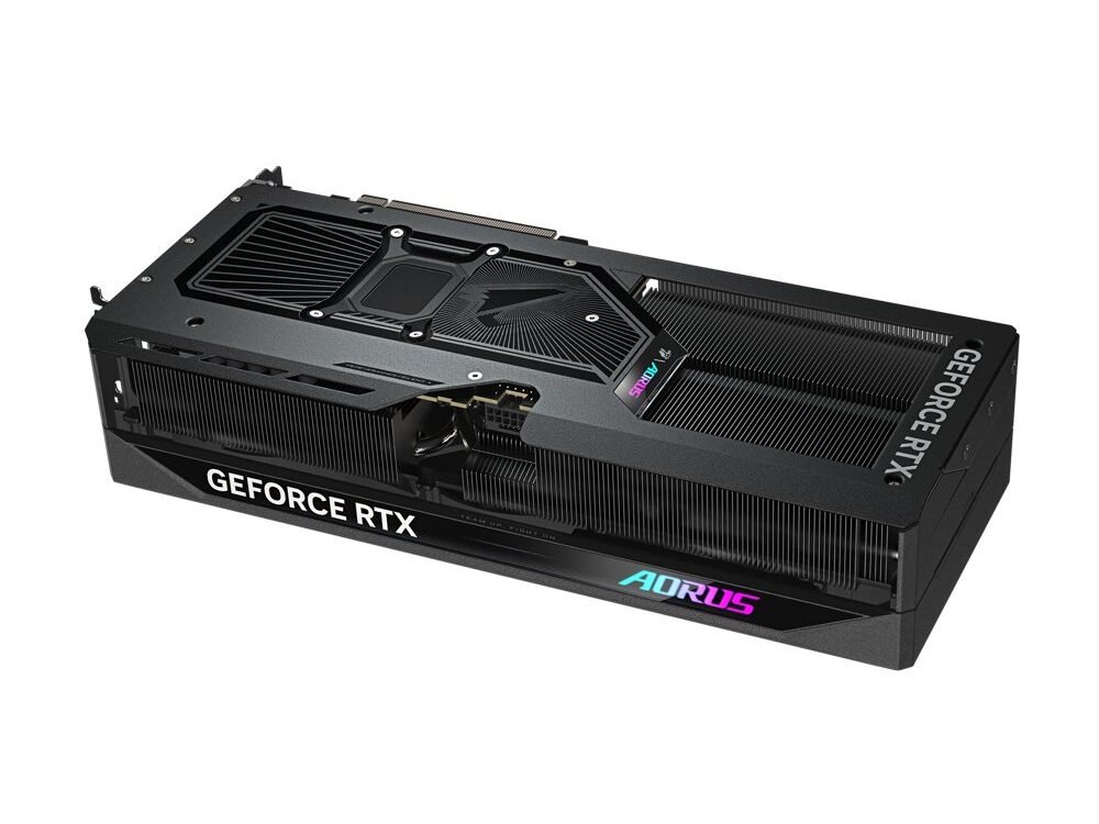 De kaart wordt actief gekoeld door het geavanceerde WINDFORCE-koelsysteem van GIGABYTE, voorzien van drie krachtige 100 mm ventilatoren, een robuust koellichaam met kopergeleiders en een verdichte heatsinkstructuur. Dankzij Zero dB-technologie blijven de ventilatoren volledig uitgeschakeld bij lichte belasting, terwijl de dual-BIOS-functie de keuze biedt tussen stille en prestatiegerichte werking. De RGB Halo-verlichting op de fans geeft de kaart bovendien een premium uitstraling die perfect past in een high-end build.