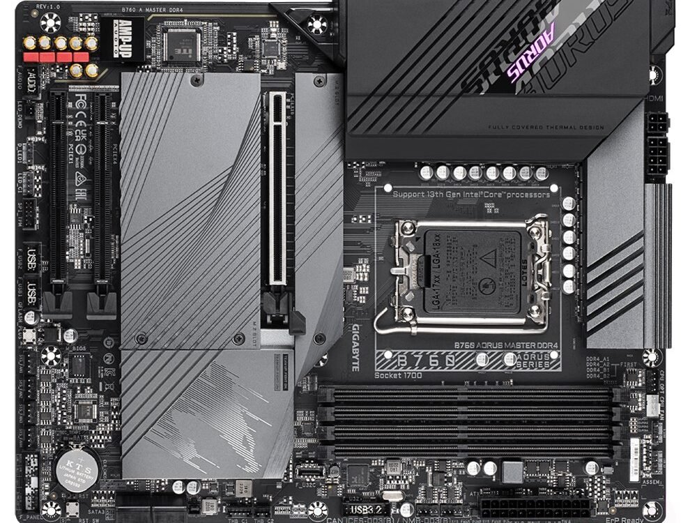 € 185,50 incl. btwGigabyte B760 AORUS MASTER DDR4 (rev. 1.0) | Socket LGA 1700 | Intel B760 | 4xDDR4 | ATX | Moederbord
