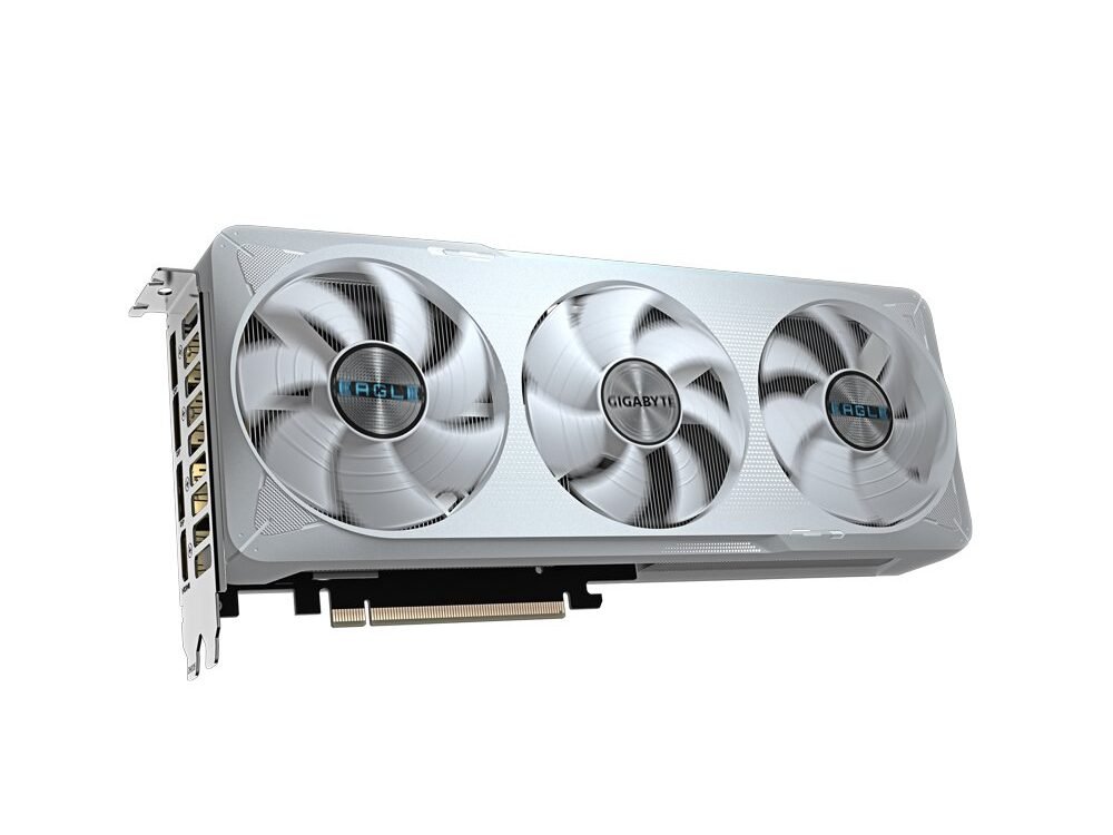 De kaart beschikt over drie DisplayPort 2.1‑poorten en één HDMI 2.1b‑poort voor multi‑monitoropstellingen tot 8K resolutie. De PCIe 5.0‑interface en de 16‑pins 12VHPWR‑voedingsaansluiting zorgen voor een stabiele en efficiënte energievoorziening. Voorzien van een stijlvolle metalen backplate en subtiele RGB‑verlichting, combineert de EAGLE OC ICE SFF prestaties met een elegante uitstraling.