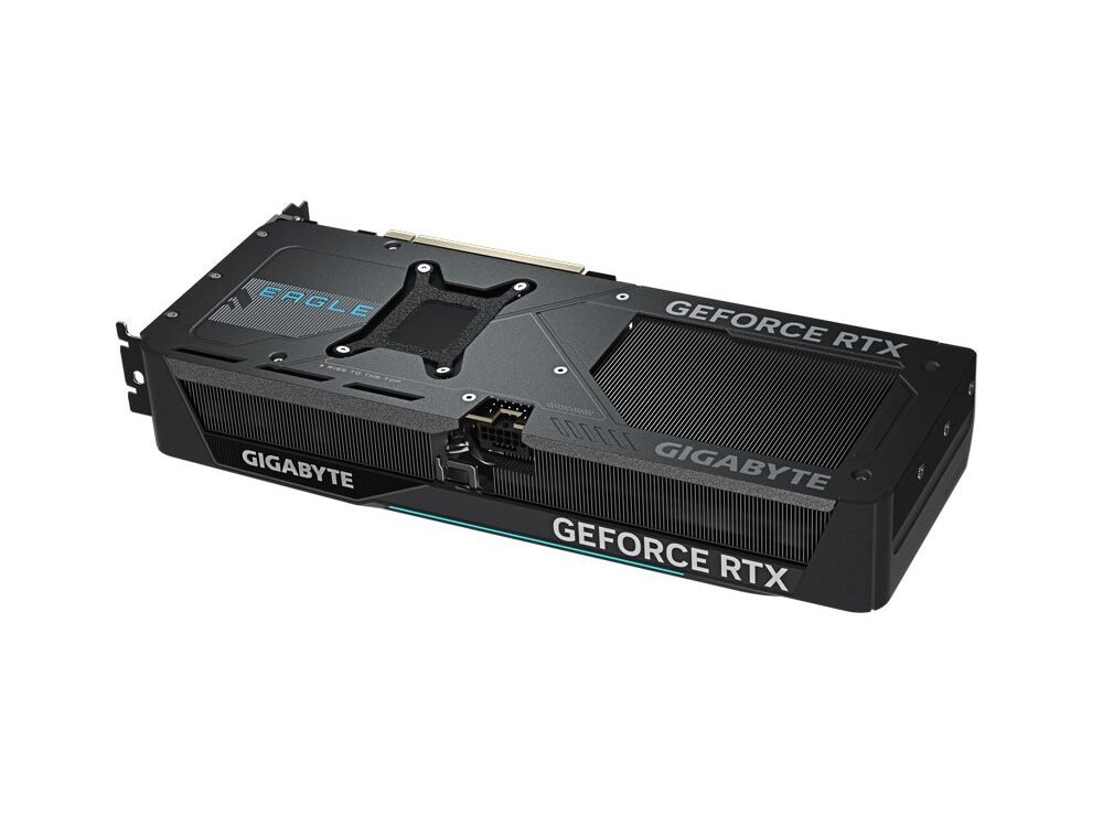 Voor de koeling gebruikt GIGABYTE het efficiënte WINDFORCE SFF-koelsysteem, bestaande uit drie 90 mm ventilatoren, een robuuste aluminium heatsink met koperen heatpipes en Zero dB-technologie. De kaart blijft fluisterstil bij lage belasting en actief gekoeld bij maximale prestaties, zelfs tijdens langdurige gaming- of renderingsessies.