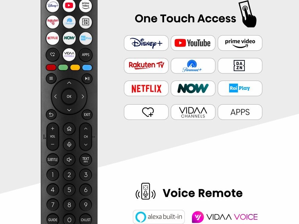 Deze Smart TV is uitgerust met het intuïtieve VIDAA-platform, waarmee je direct toegang hebt tot populaire streamingdiensten zoals Netflix, YouTube en Disney+. Spraakbesturing biedt extra gebruiksgemak, zodat je eenvoudig door menu’s kunt navigeren of favoriete content kunt vinden.