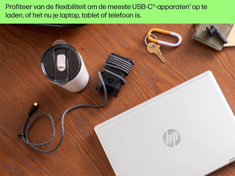 Laad de meeste USB-C®-apparaten op met slechts één compacte oplader. De HP 65W USB-C-laptoplader levert tot 65W vermogen, genoeg voor bijna elk USB-C®-apparaat.