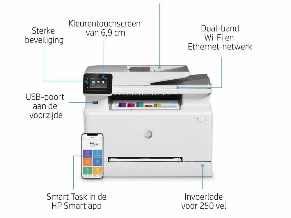 Geniet van naadloze connectiviteit met ingebouwde Wi-Fi, waardoor je vanaf elke plek in het kantoor of op afstand via je smartphone kunt printen. De HP Color LaserJet Pro M282nw is ook uitgerust met geavanceerde beveiligingsfuncties die potentiële bedreigingen detecteren en voorkomen, zodat je gevoelige bedrijfsinformatie beschermd blijft.