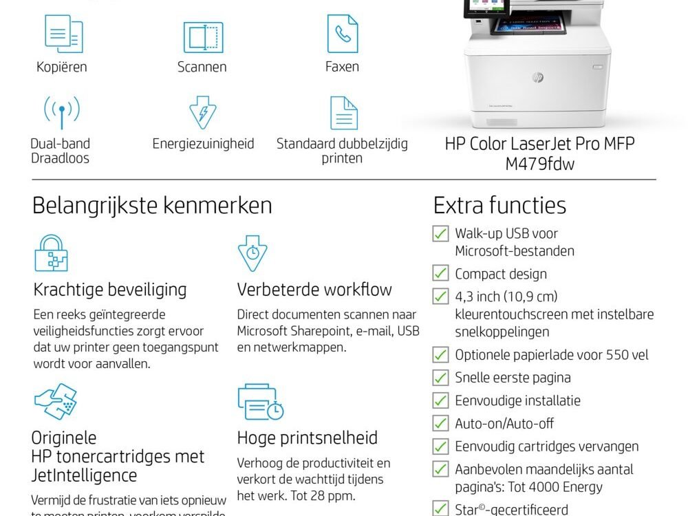 In het bedrijfsleven winnen betekent slimmer werken. De HP Color LaserJet Pro MFP M479 is ontworpen om je in staat te stellen je tijd daar in te steken waar die het meest effectief is: je bedrijf laten groeien en de concurrentie voor blijven.