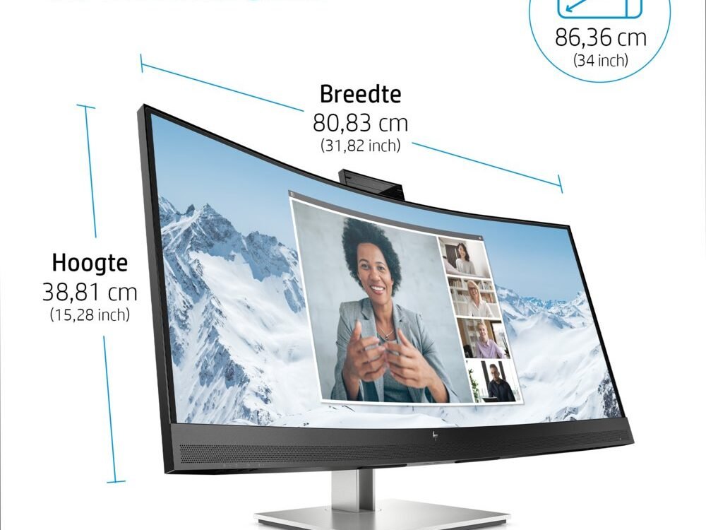 HP E34m G4 34″ | 3440×1440 VA | 75Hz | Curved | USB-C | Webcam, Microphone & Speakers | Conferencing Monitor | Ergonomic Design