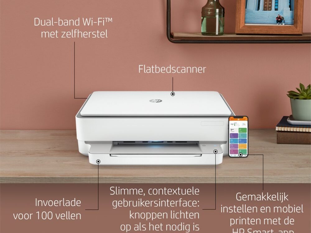De HP Envy 6020e AiO is een kleuren all-in-one printer die perfect is voor thuisgebruik. De printer beschikt over WiFi-connectiviteit, waardoor je gemakkelijk vanaf je smartphone, tablet of computer kunt afdrukken zonder dat er kabels nodig zijn. Het compacte ontwerp van de printer zorgt ervoor dat deze gemakkelijk in elke kamer past en niet veel ruimte inneemt.