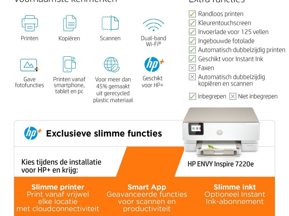 Dit is een printer die HP+ ondersteunt. Kies voor HP+ bij de installatie van het product om de voordelen te activeren. Voor HP+ is een HP account, continue verbinding met het internet en exclusief gebruik van originele HP inktcartridges tijdens de gehele levensduur van de printer vereist. Meer informatie op: http://www.hp.com/plus-faq