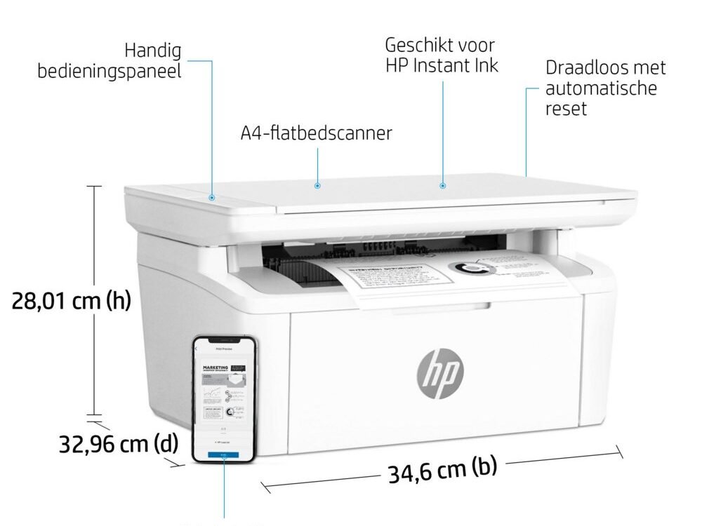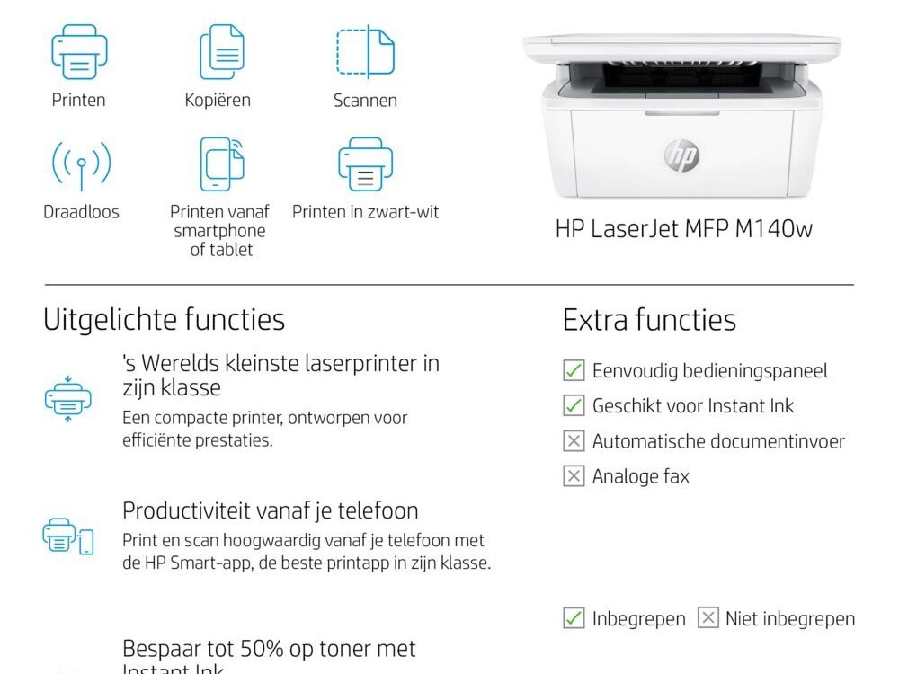 Beperk het aantal onderbrekingen met zelfherstellende Wi-Fi® waardoor je altijd verbinding hebt. Profiteer van essentiële beveiligingsfuncties voor behoud van privacy en controle. Met de HP Smart-app kun je rekenen op support via chatbot en handige meldingen.