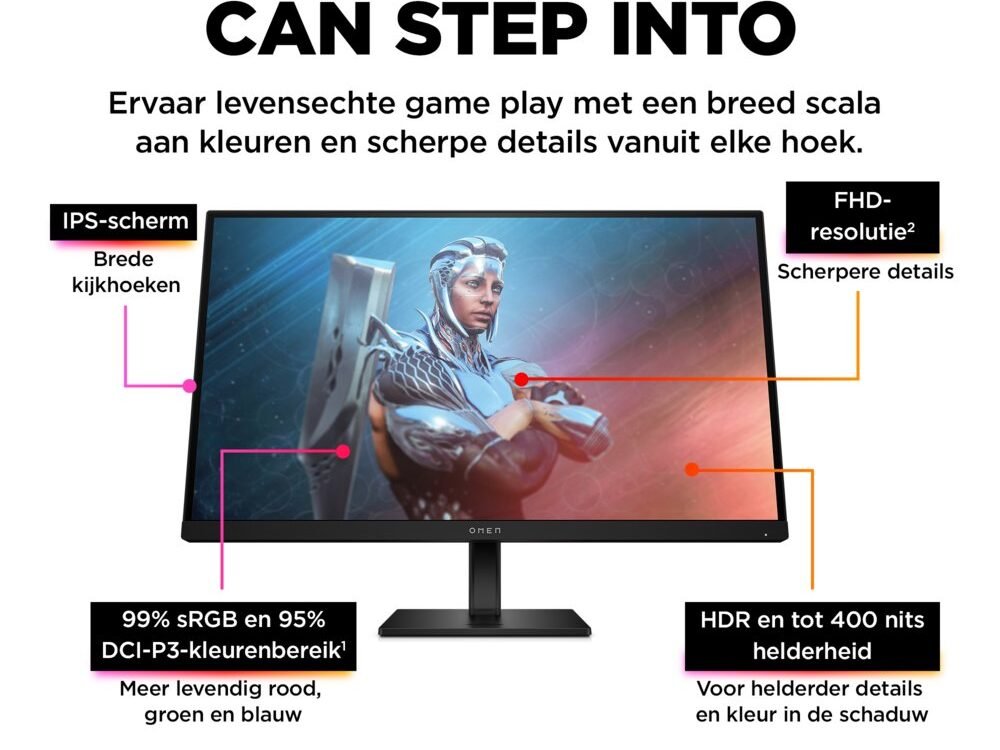 Bereik nieuwe mogelijkheden met de OMEN by HP 27 inch FHD 165 Hz gamingmonitor. Dankzij de snelle prestaties en levendige kleuren ga je helemaal op in de games die je het liefst speelt, terwijl hij door het slanke ontwerp geweldig staat op je bureau.