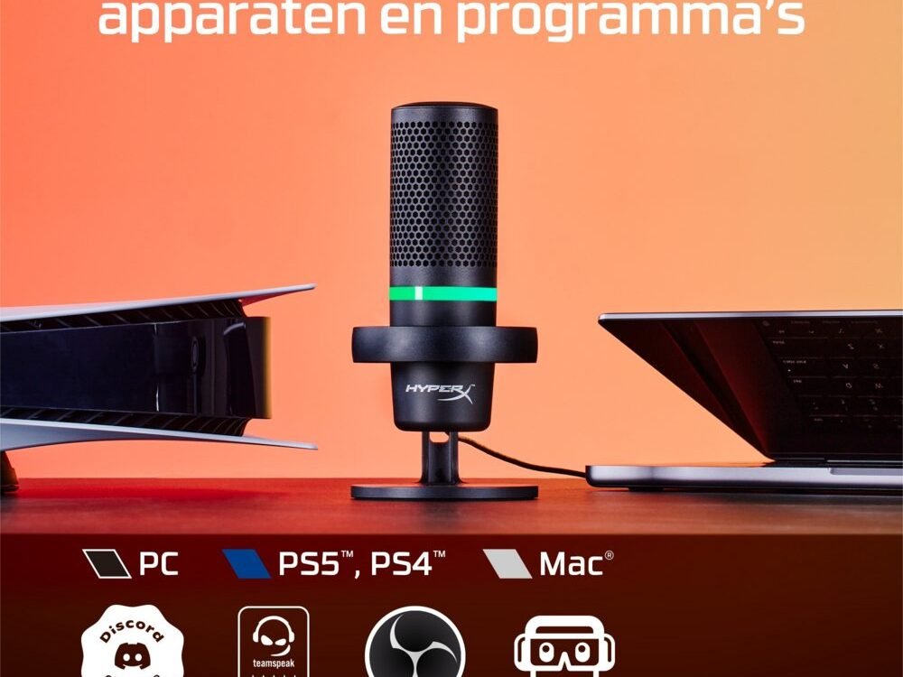 Ontdek de HyperX 4P5E2AA, een USB-microfoon met een opvallende stijl en indrukwekkend geluid. Het mooie ontwerp, de subtiele RGB-lichtring en de lage schokdemper maken de HyperX DuoCast een veelzijdige USB-microfoon voor gaming, werk en contentcreatie. De microfoon biedt handige functies zoals tikken om te dempen en een levendige LED-microfoon demp-indicator. De lage schokdemper past perfect bij het strakke, minimalistische uiterlijk en absorbeert trillingen voor helder geluid. Met een meegeleverde montageset is de DuoCast compatibel met de meeste bevestigingen en werkt hij met PC, PS5™, PS4™ en Mac®. Personaliseer de RGB-lichtring met de HyperX NGENUITY-software om je eigen unieke stijl uit te dragen.