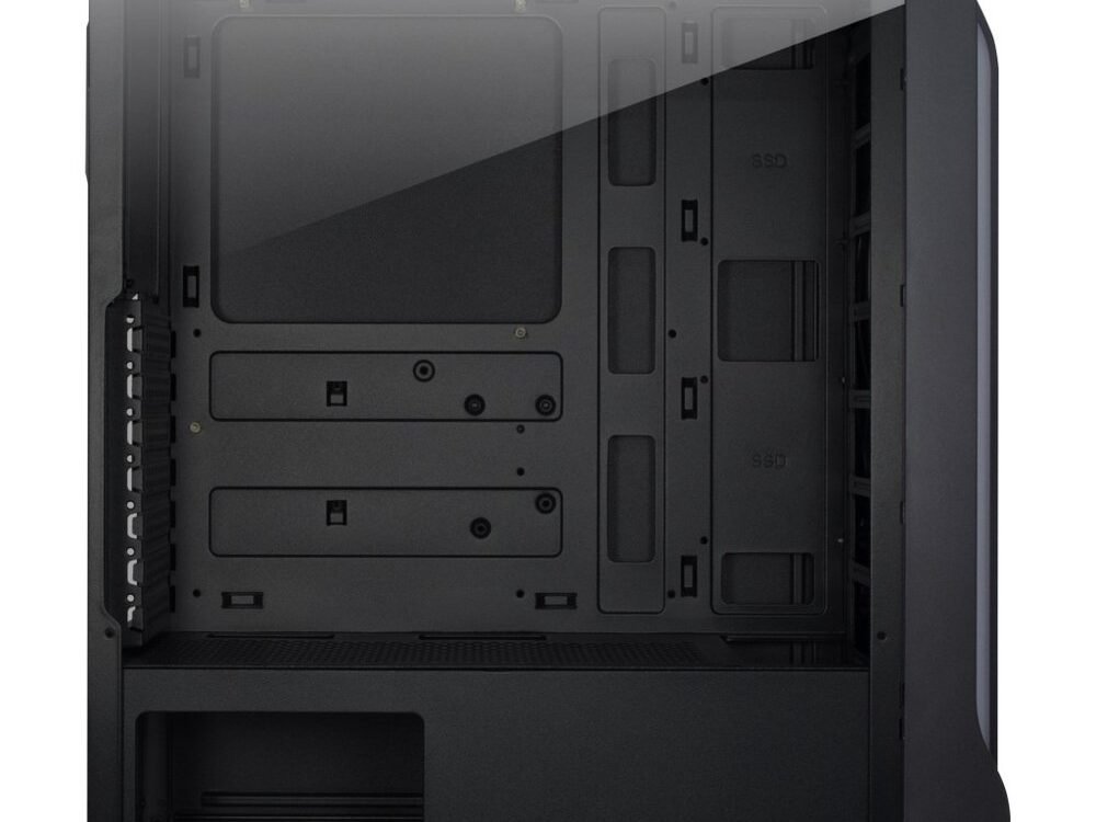 Er is ruimte voor optionele ventilatoren niet alleen achteraan de voorkant, op het deksel en aan de achterkant, maar ook boven de voedingstunnel kunnen twee 120mm ventilatoren worden gemonteerd, die kunnen helpen bij het afvoeren van warmte en koeling. In de aparte voedingstunnel bevindt zich naast de voedingsmontageplaats een verwijderbare HDD-kooi, die ruimte biedt voor een 2,5″ SSD en een 3,5″ HDD. Stoffilters in het deksel en de bodem van de behuizing, die eenvoudig te verwijderen en schoon te maken zijn, houden de binnenkant vrij van stof.