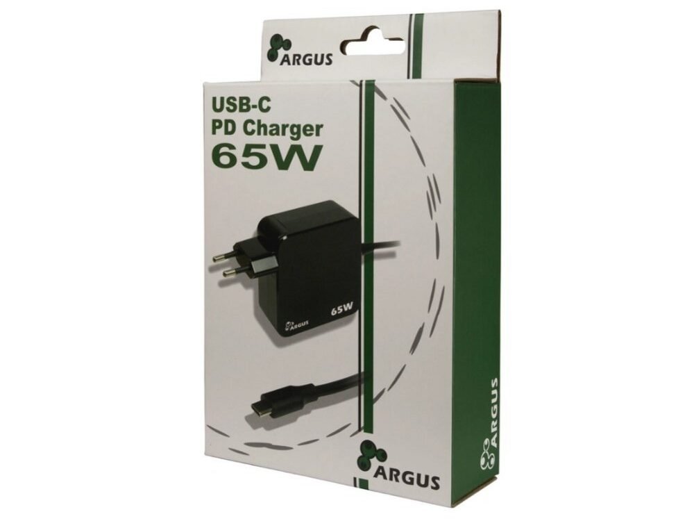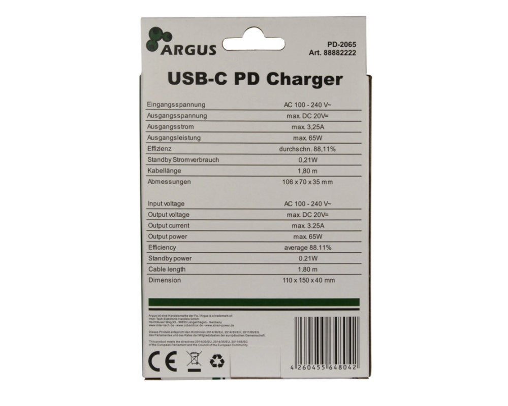 Inter-Tech Argus PD-2065 | Universele USB-C Oplader 65W | Zwart | Met Geïntegreerde Kabel