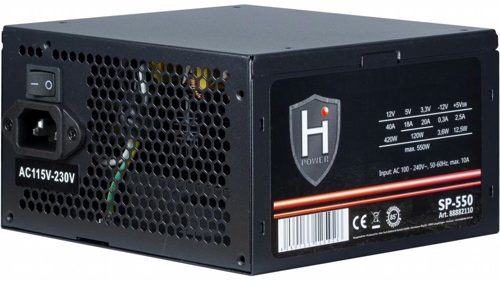 PSU Inter-Tech HIPOWER SP-550 550W 20+4 pin ATX Zwart