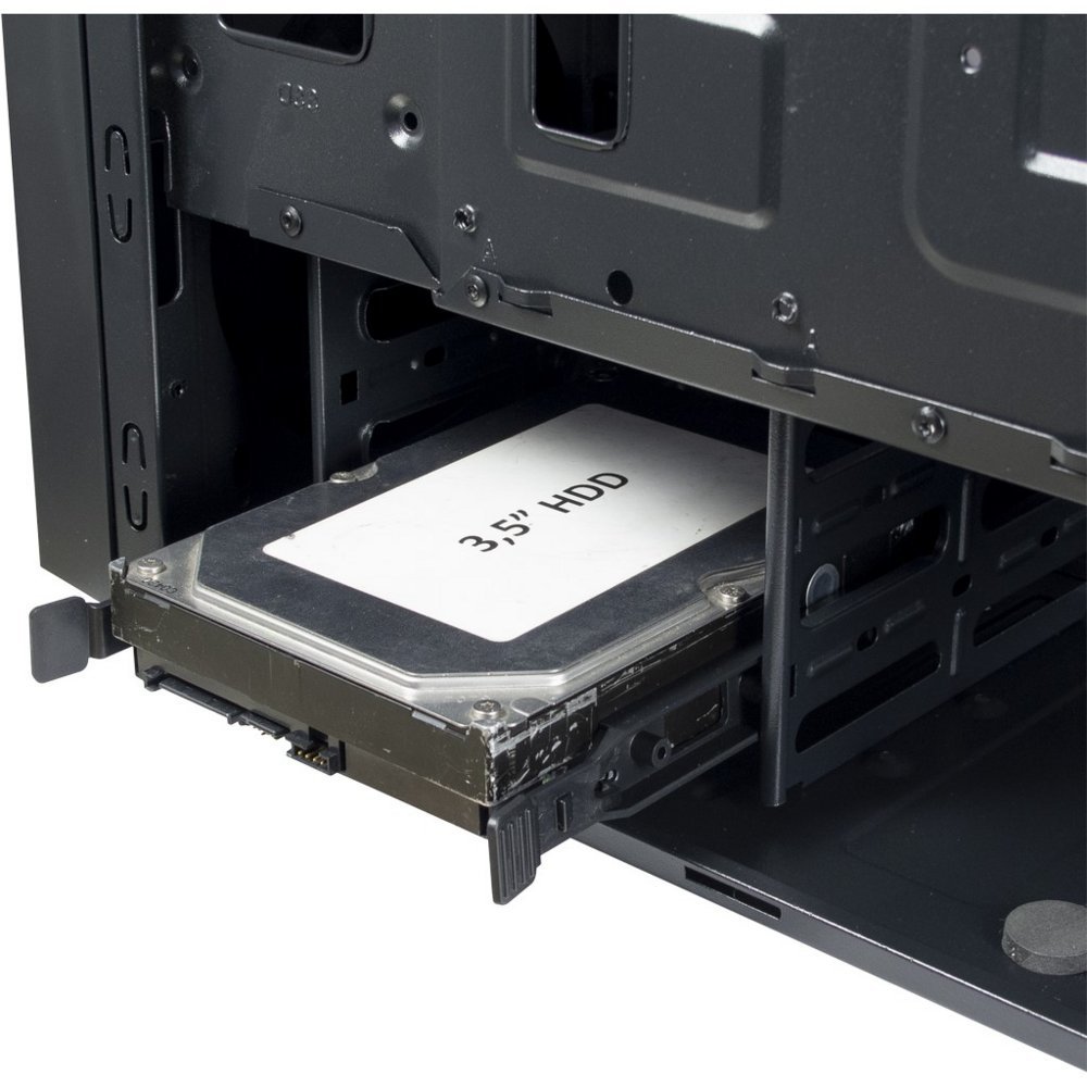 De Inter-Tech T-11 Televen is een zwarte tower PC met een compacte vormfactor. Het biedt ondersteuning voor voorste, achterste en bovenste ventilators met een diameter van 120 mm, waardoor een efficiënte koeling mogelijk is. Deze behuizing ondersteunt HDD-groottes van zowel 2.5″ als 3.5″. Met afmetingen van 200 mm breed, 390 mm diep en 425 mm hoog, biedt de T-11 Televen voldoende ruimte voor componenten en een gestroomlijnde esthetiek.