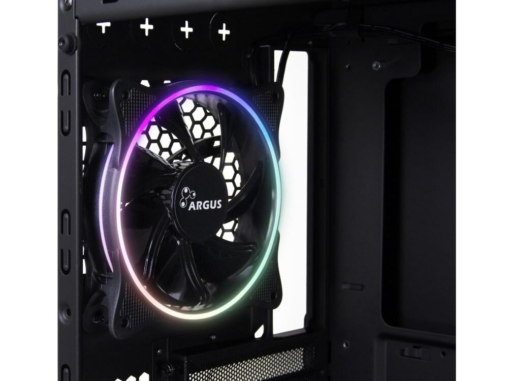 Drie standaard 120mm RGB LED ventilatoren zetten niet alleen de toon voor het interieur, maar zorgen ook voor schone en koele lucht voor de geïnstalleerde componenten. De effecten van de ventilatoren kunnen worden geregeld via de ingebouwde RGB LED schakelaar of via de 3-pins RGB header aansluiting voor 5V RGB mainboard controllers, gesynchroniseerd met de RGB LED’s aan de voorzijde en boven de voedingstunnel.